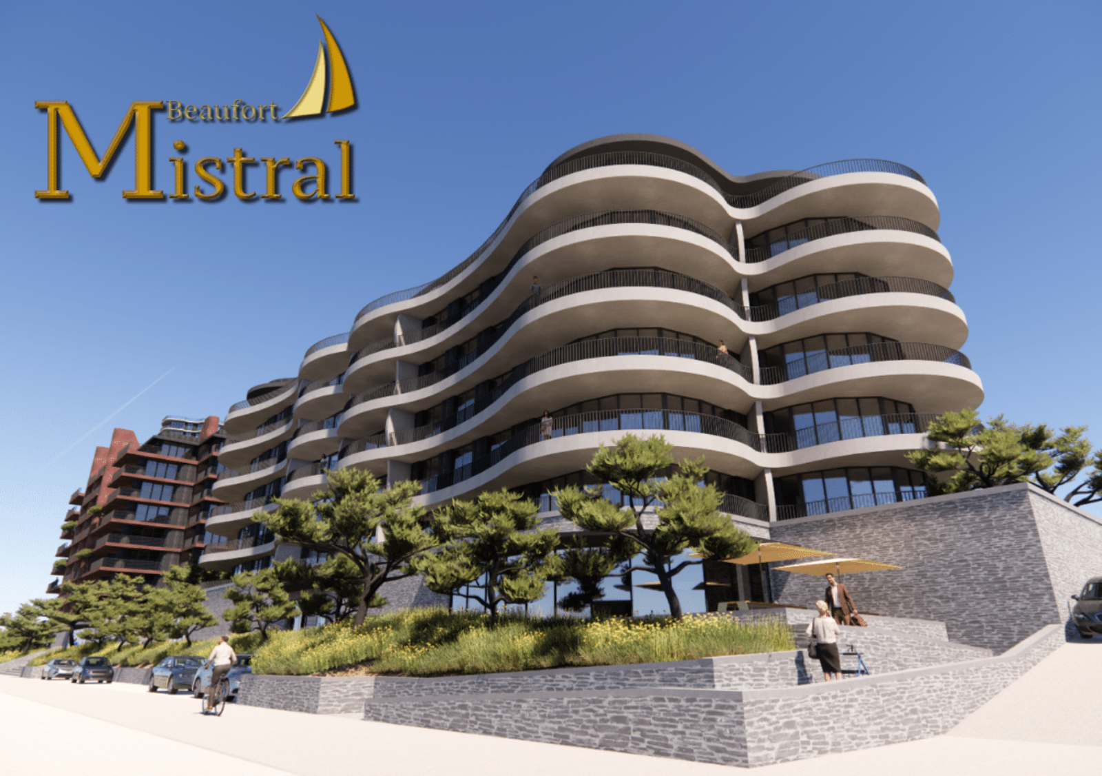 Het indrukwekkende uitzicht, de warme uitstraling, de luxe, de lichtinval, de ruime buitenruimtes, de bijzondere ligging. Allemaal factoren die het wonen en recreëren in Mistral mooi maken. De gebruikte materialen, de terugliggende gevelvlakken en de markante vloerlijnen creëren het speels effect. Dat alles in warme zandachtige kleuren die een natuurlijke verbinding maken met de omgeving.