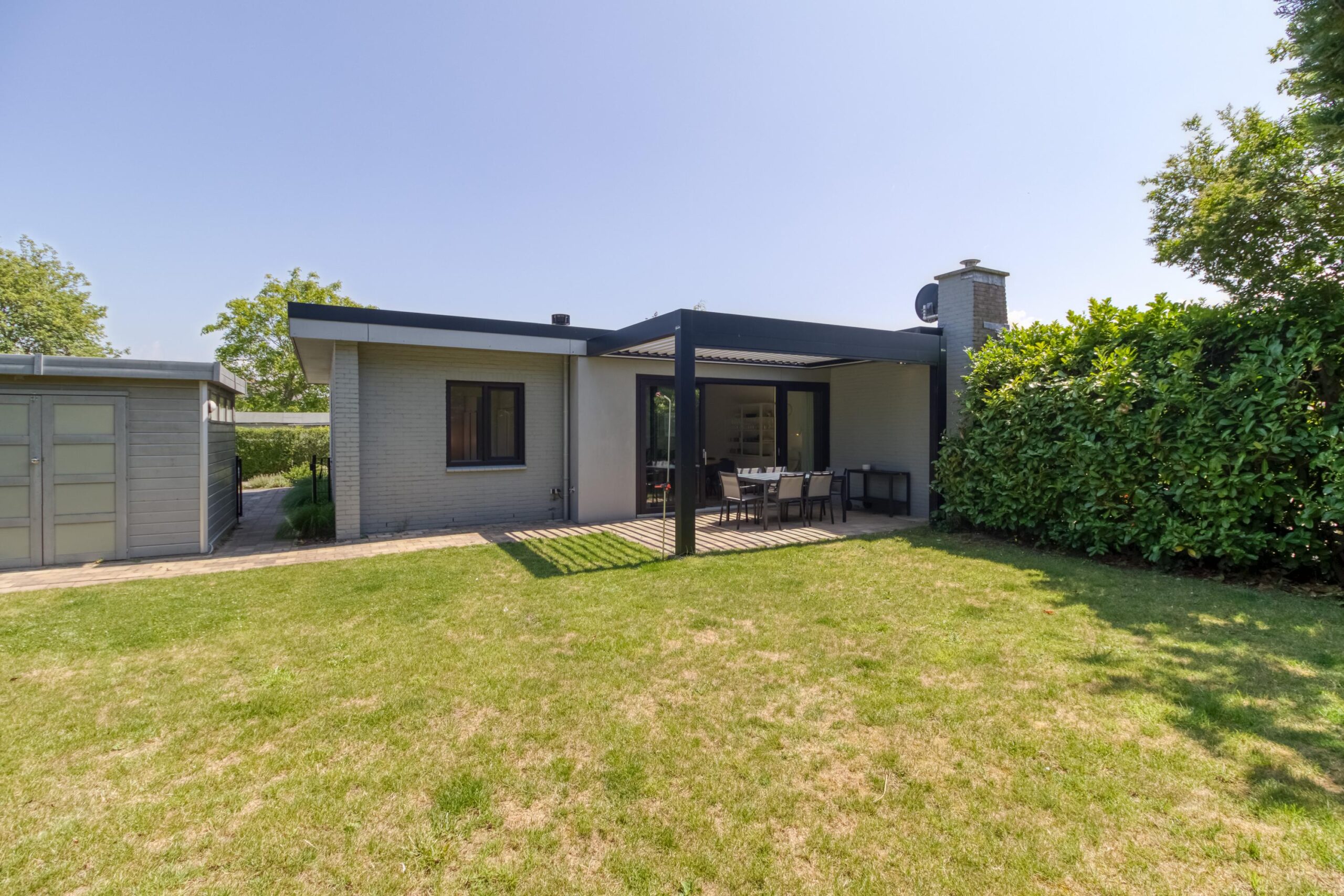 De ruime achtertuin op het noordwesten biedt volop mogelijkheden om in alle rust van het buitenleven te genieten. Dankzij de vrije ligging aan de achterzijde heeft u hier een prachtig uitzicht over de polder. De tuin is grotendeels onderhoudsvriendelijk aangelegd en beschikt over meerdere terrassen, waaronder een gezellige zitplek bij het gastenverblijf. Een echte blikvanger is het verwarmde en overdekte zwembad, waardoor u van het vroege voorjaar tot het najaar comfortabel kunt zwemmen. Daarnaast zijn er een kleine kas en een vijver, die zorgen voor een natuurlijke en sfeervolle uitstraling. Praktisch is de aanwezige garage en de eigen parkeergelegenheid op het terrein.
