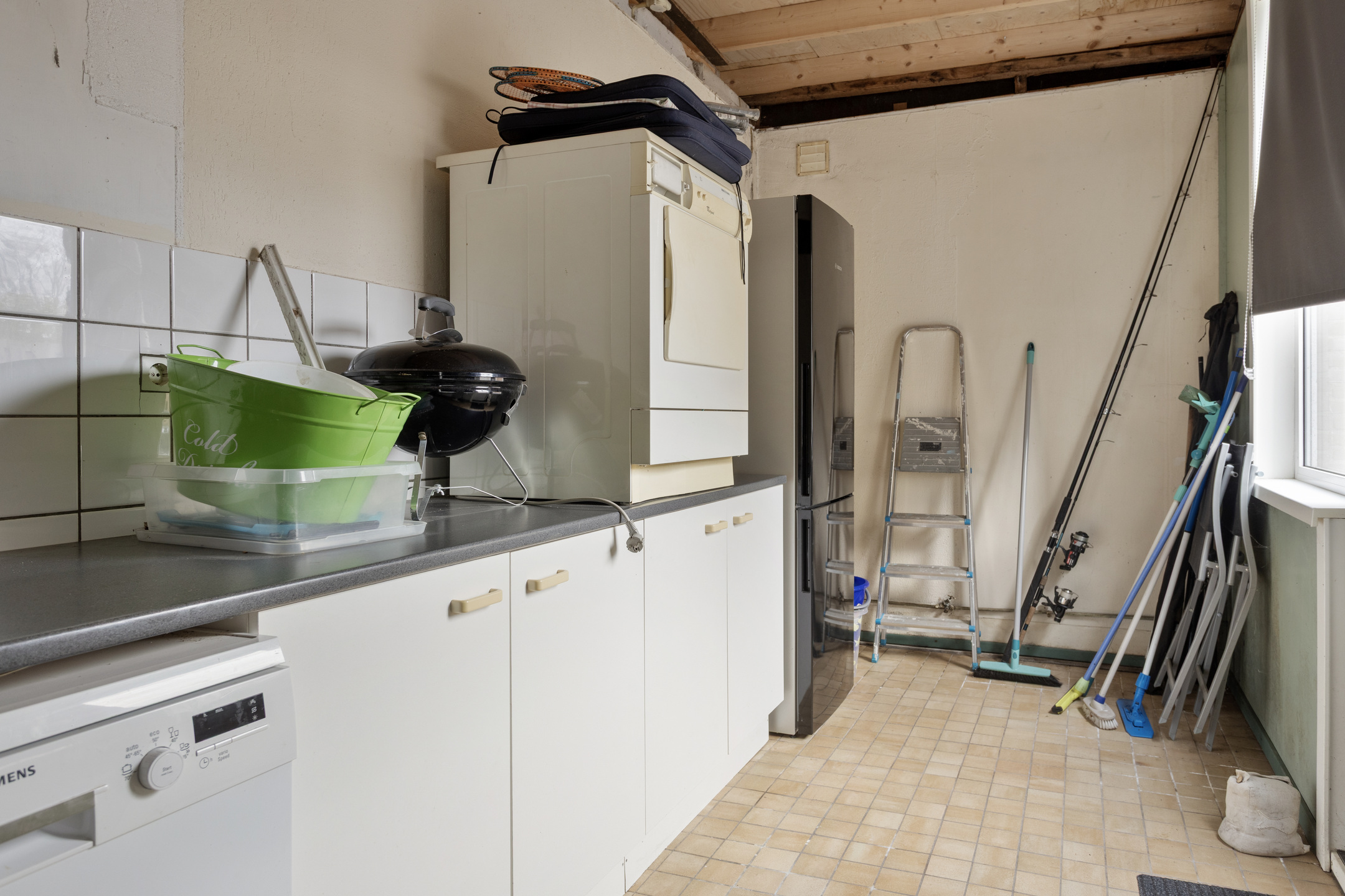 * bijkeuken met wasmachineaansluiting;