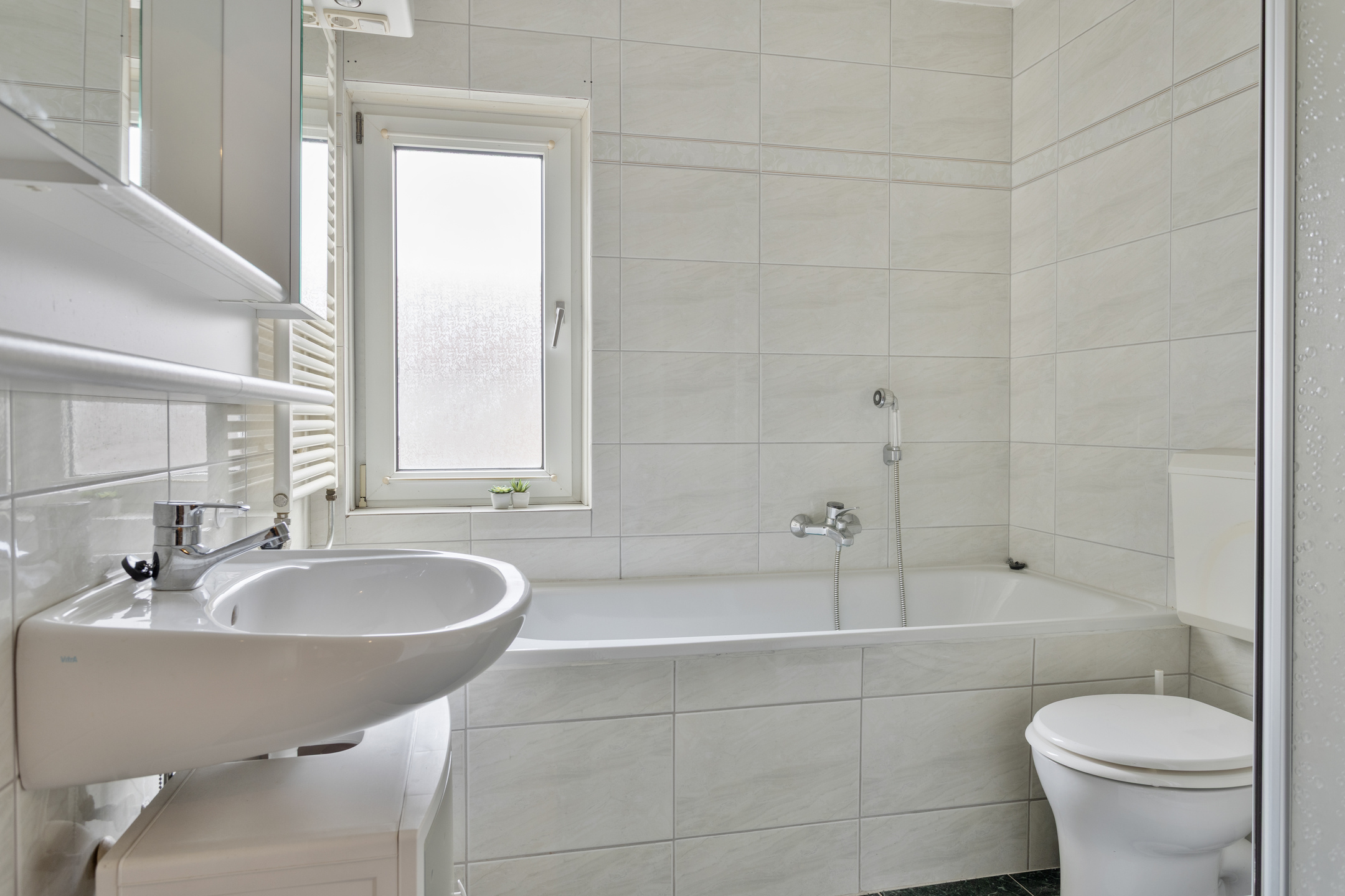 - Badkamervoorzieningen Ligbad, toilet, douche, wastafel