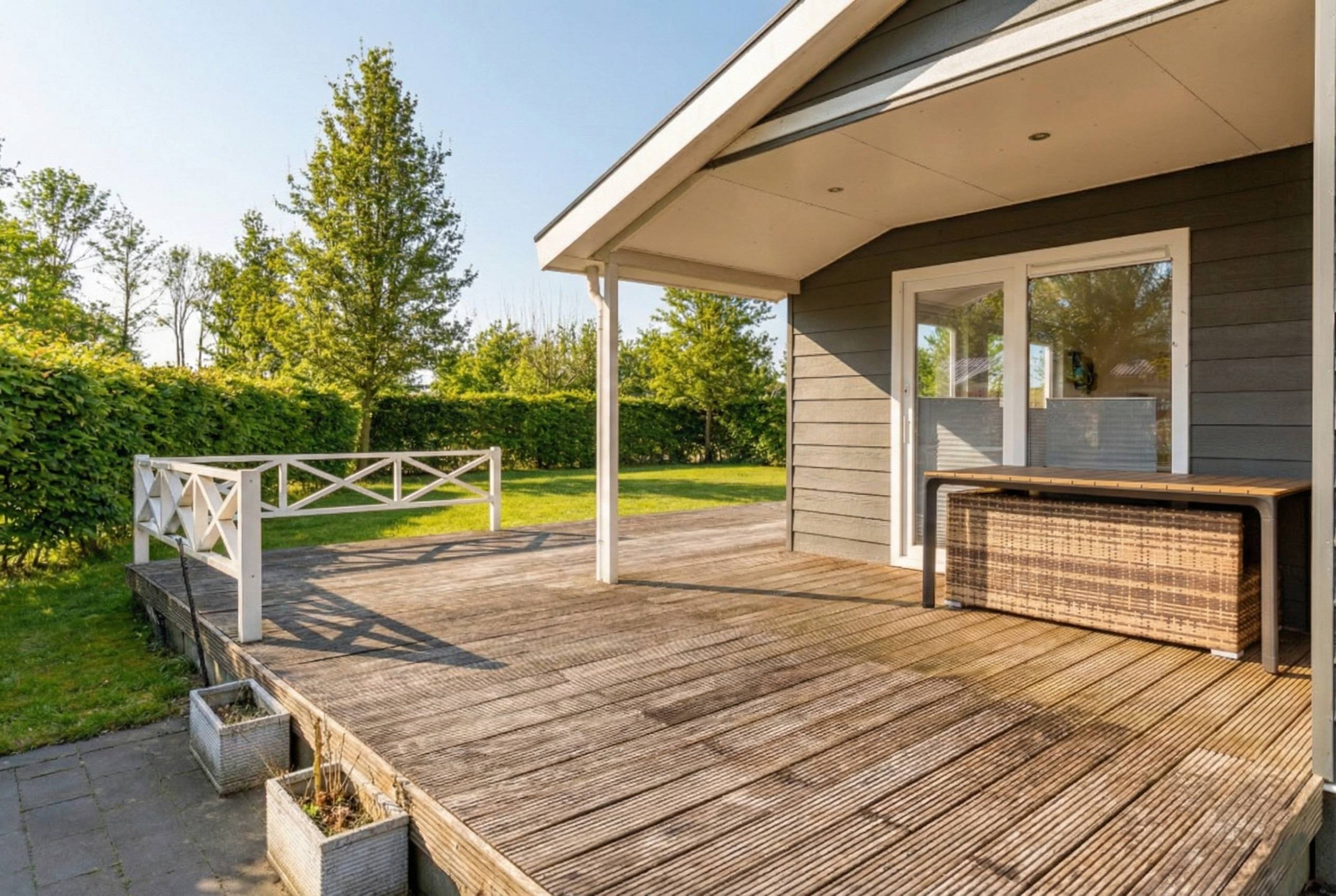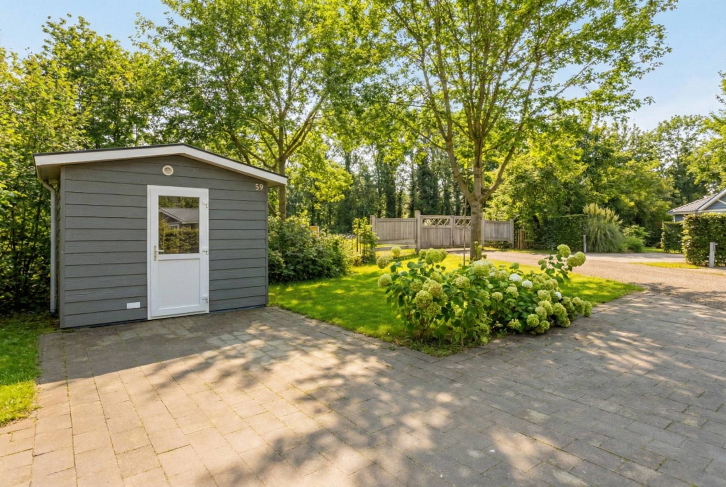 De bungalow is omgeven door een ruime tuin, met een mooi aangelegde veranda die uitnodigt tot het buitenleven. De tuin biedt volop mogelijkheden om een gezellige zit- en eethoek in te richten, perfect voor ontspanning of een gezellig diner in de buitenlucht. Aan de voorzijde van de bungalow vindt u een tuinhuis, dat is voorzien van zowel water als elektriciteit. Bovendien is er parkeergelegenheid op eigen terrein.