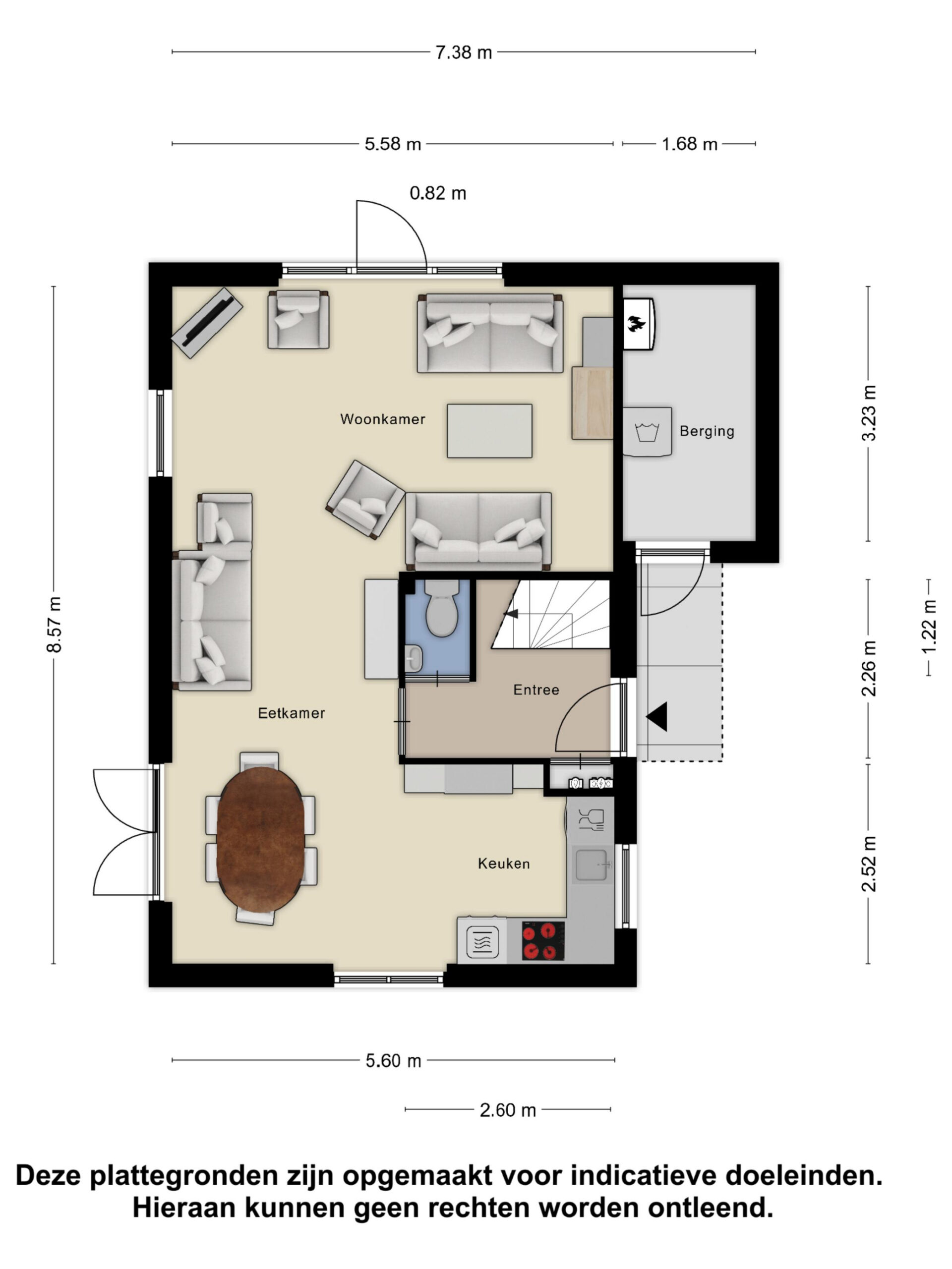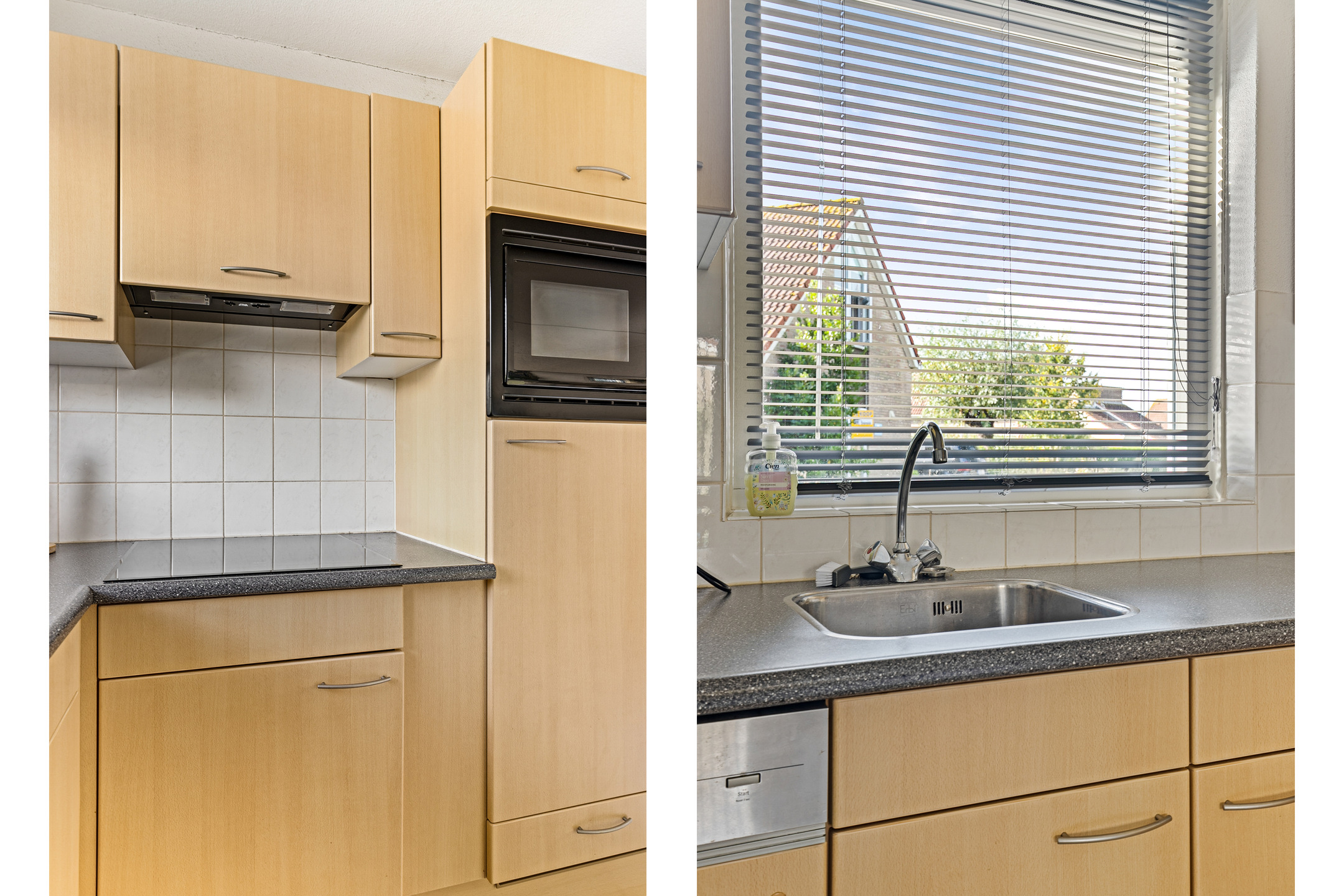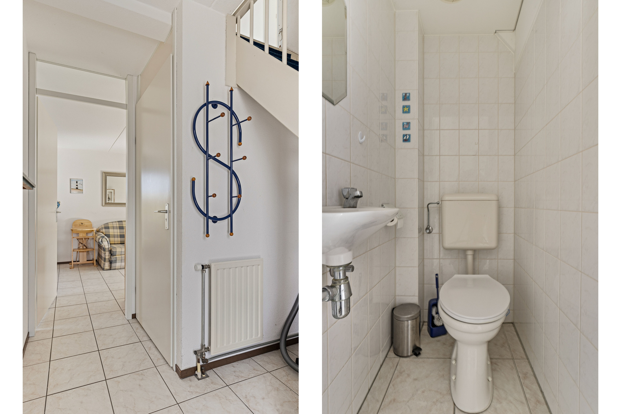 Bij binnenkomst treft u een ruime hal met toegang tot een toiletruimte en de trap naar de eerste verdieping. De lichte woonkamer met openslaande deuren naar de achtertuin zorgt voor veel lichtinval. De open keuken is volledig uitgerust met inbouwapparatuur, zoals een inductiekookplaat (2024), afzuigkap (2024), combi-oven, koelkast (2024) en vaatwasser. Daarnaast beschikt de woning over een praktische berging die via buiten bereikbaar is.