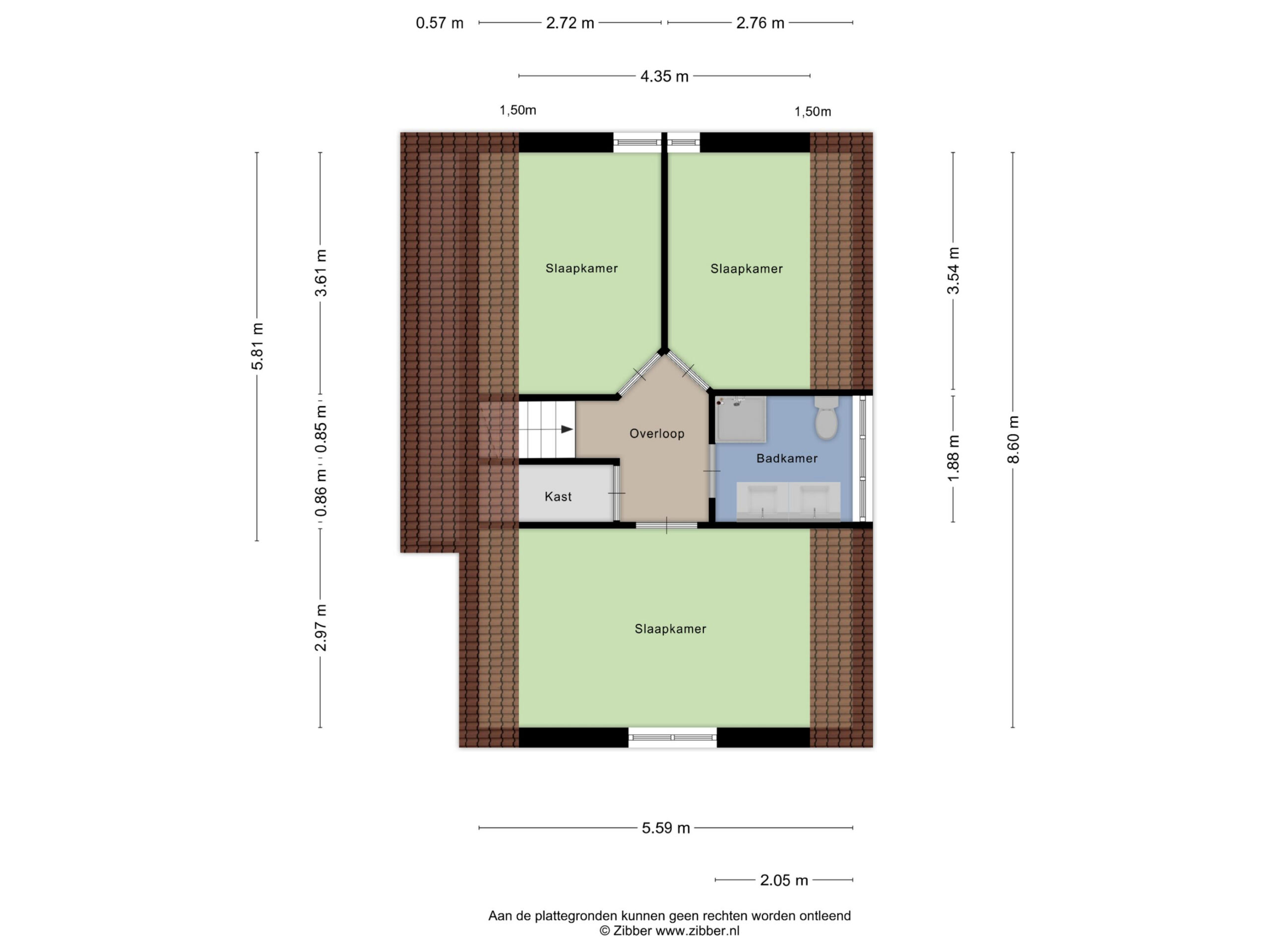 Op de eerste verdieping bevinden zicht drie comfortabele slaapkamers, de tweede badkamer en een praktische berging. De badkamer is voorzien van een douche, dubbel wastafelmeubel en een toilet. De gehele verdieping is voorzien van een vinyl vloer.