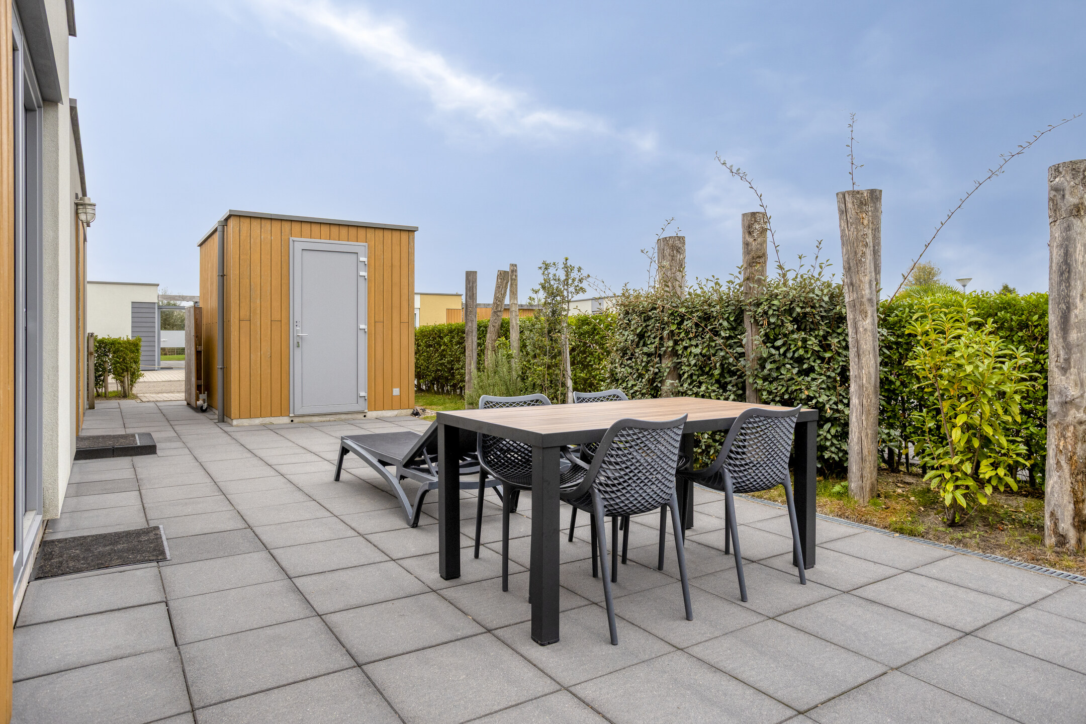 De woning heeft een zonnig terras met een fijne zithoek, waar u optimaal kunt genieten van de zon en de frisse zeelucht. Het perceel beschikt tevens over een berging voor extra opslag en een eigen parkeerplaats direct naast de woning, voorzien van een laadpunt voor elektrische voertuigen.