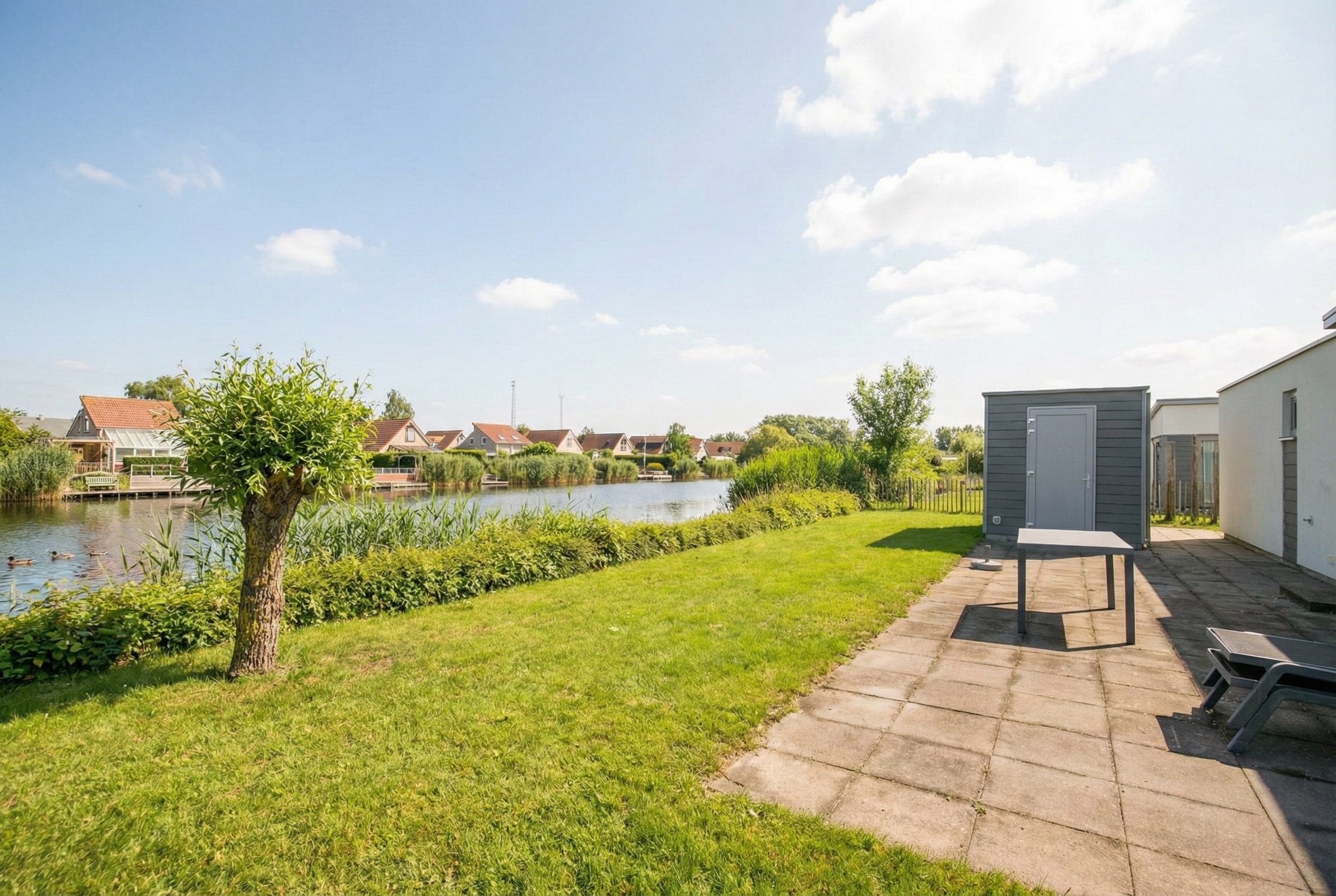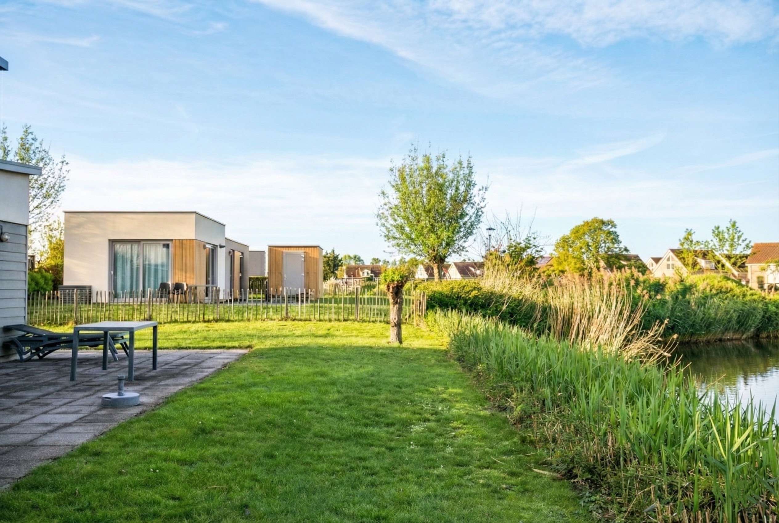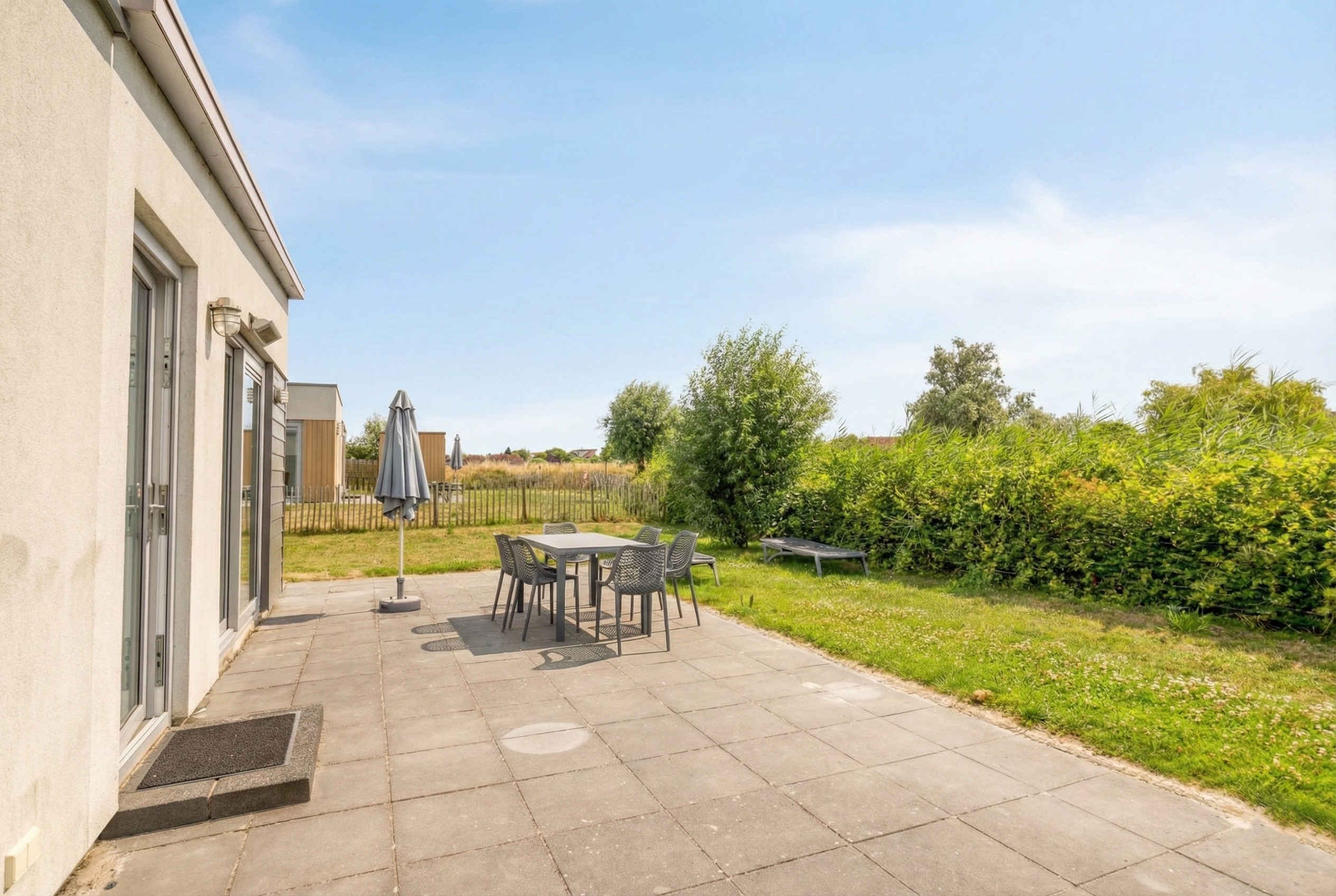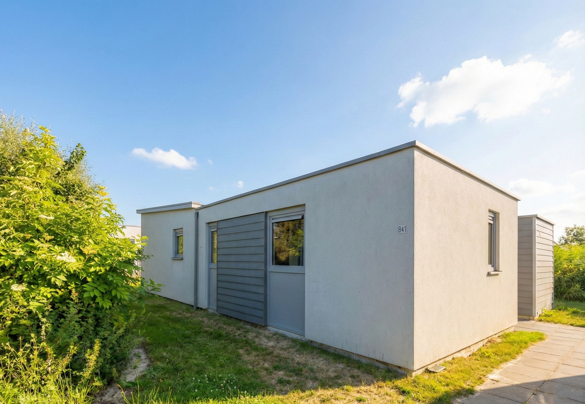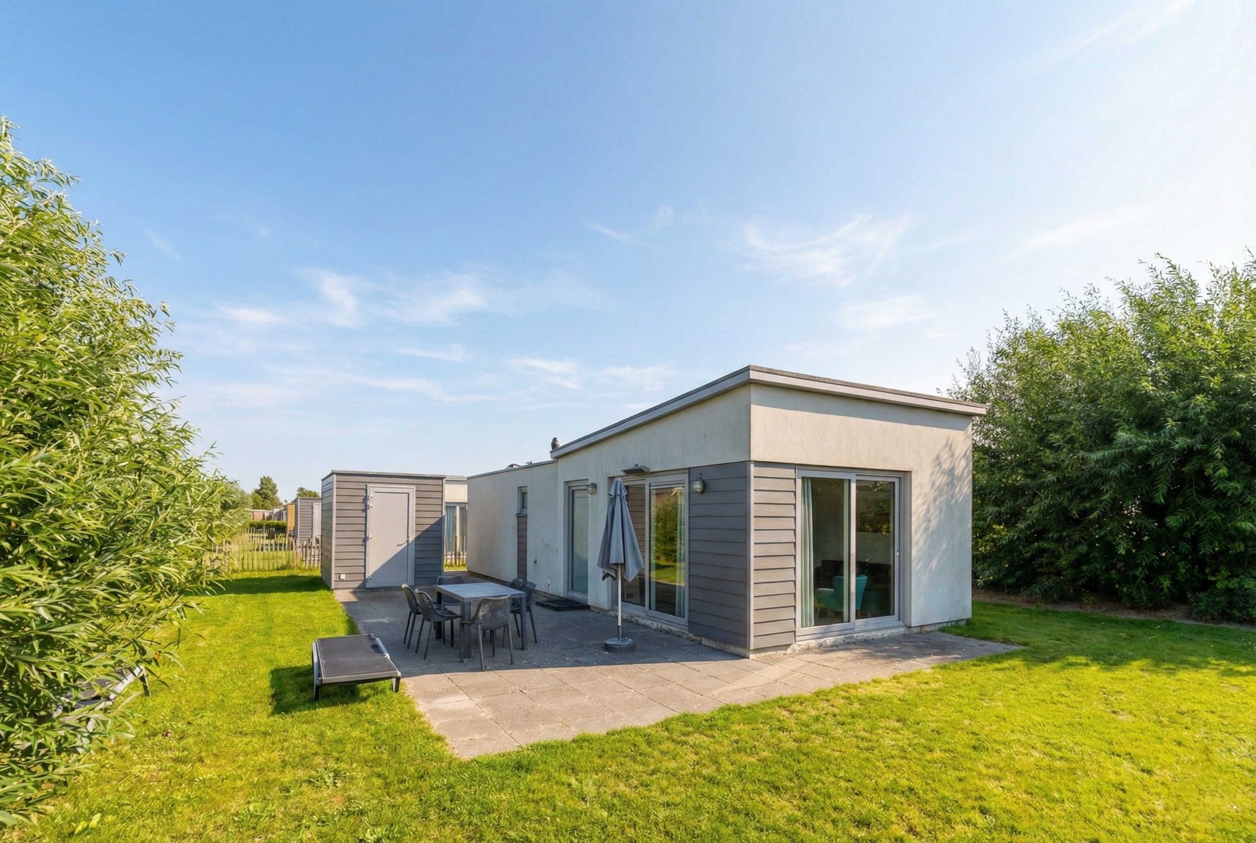 De lodge beschikt over een verzorgd en zonnig terras met voldoende ruimte voor een zit- en/of eethoek, waar u heerlijk buiten kunt genieten van de zon en de frisse zeelucht. Verder beschikt het perceel over een eigen berging voor extra opslag en een parkeerplaats op eigen terrein, direct naast de woning.