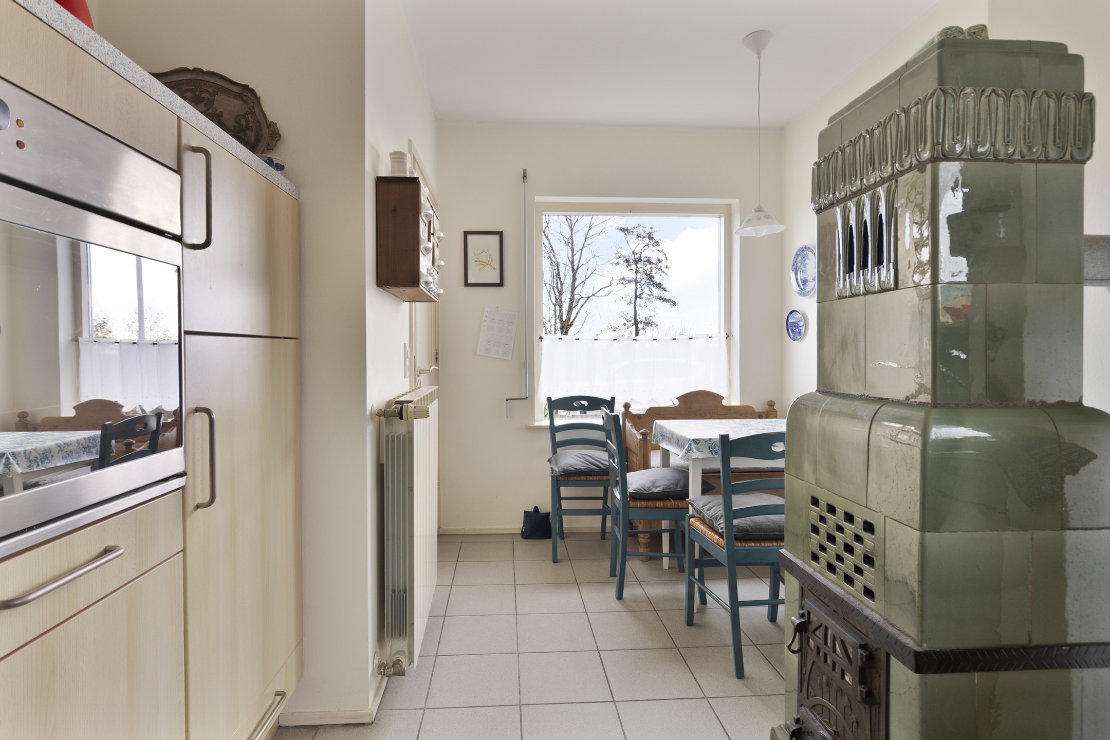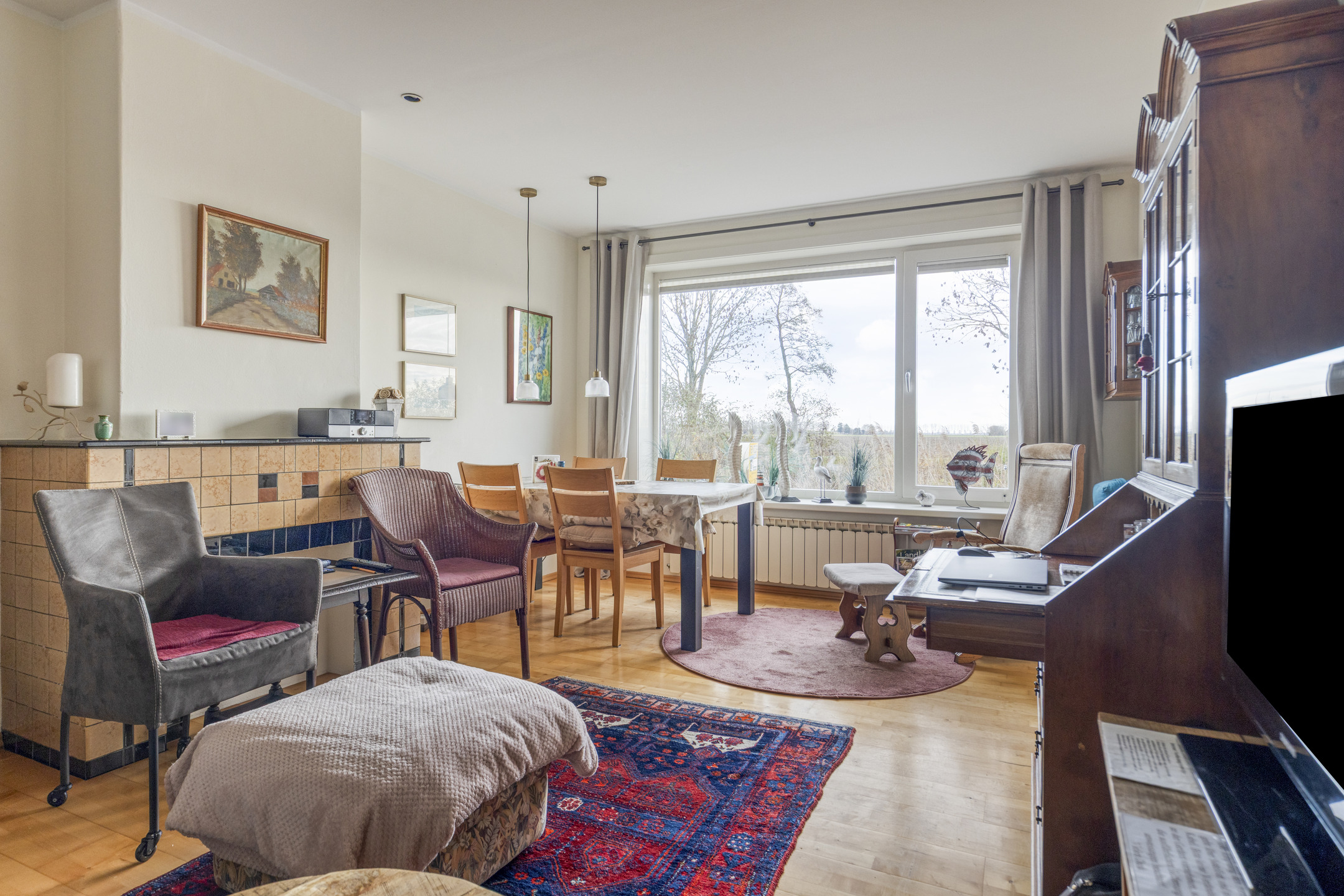 * de woonkamer is voorzien van vaste kasten en een houtkachel;