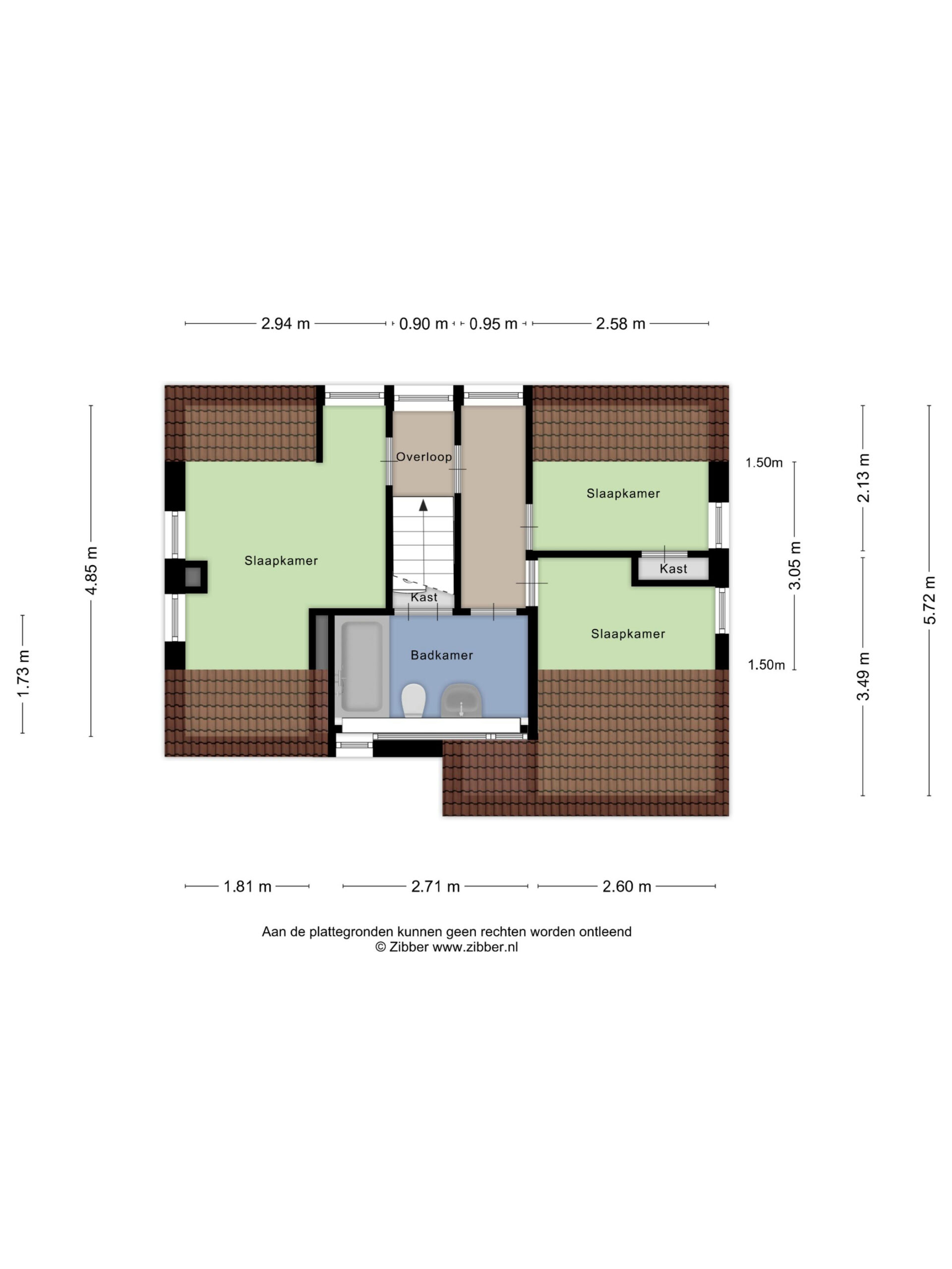 Via de trap in de hal bereikt u de overloop op de eerste verdieping. Hier bevinden zich drie slaapkamers en de tweede badkamer. Deze badkamer is comfortabel ingericht met een heerlijk ligbad, een wastafel, een tweede toilet en een vaste kast.