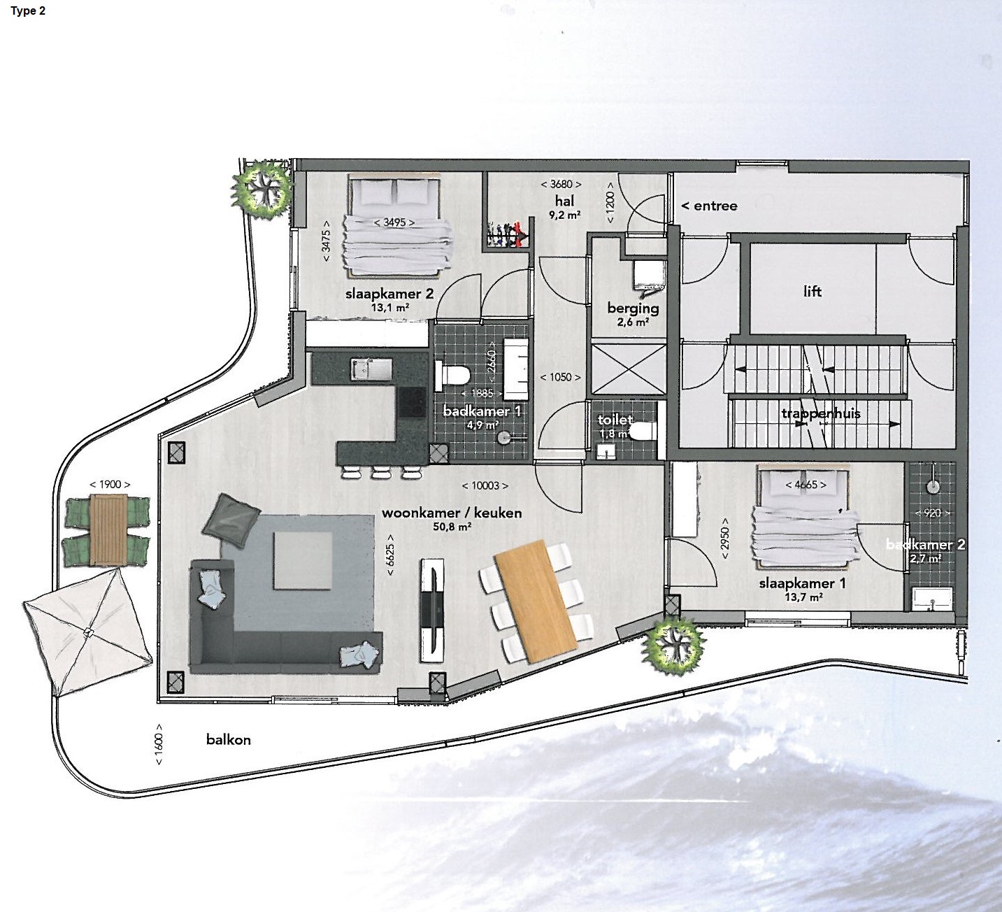 Type 2 gelegen aan havenzijde, met 2 slaapkamers