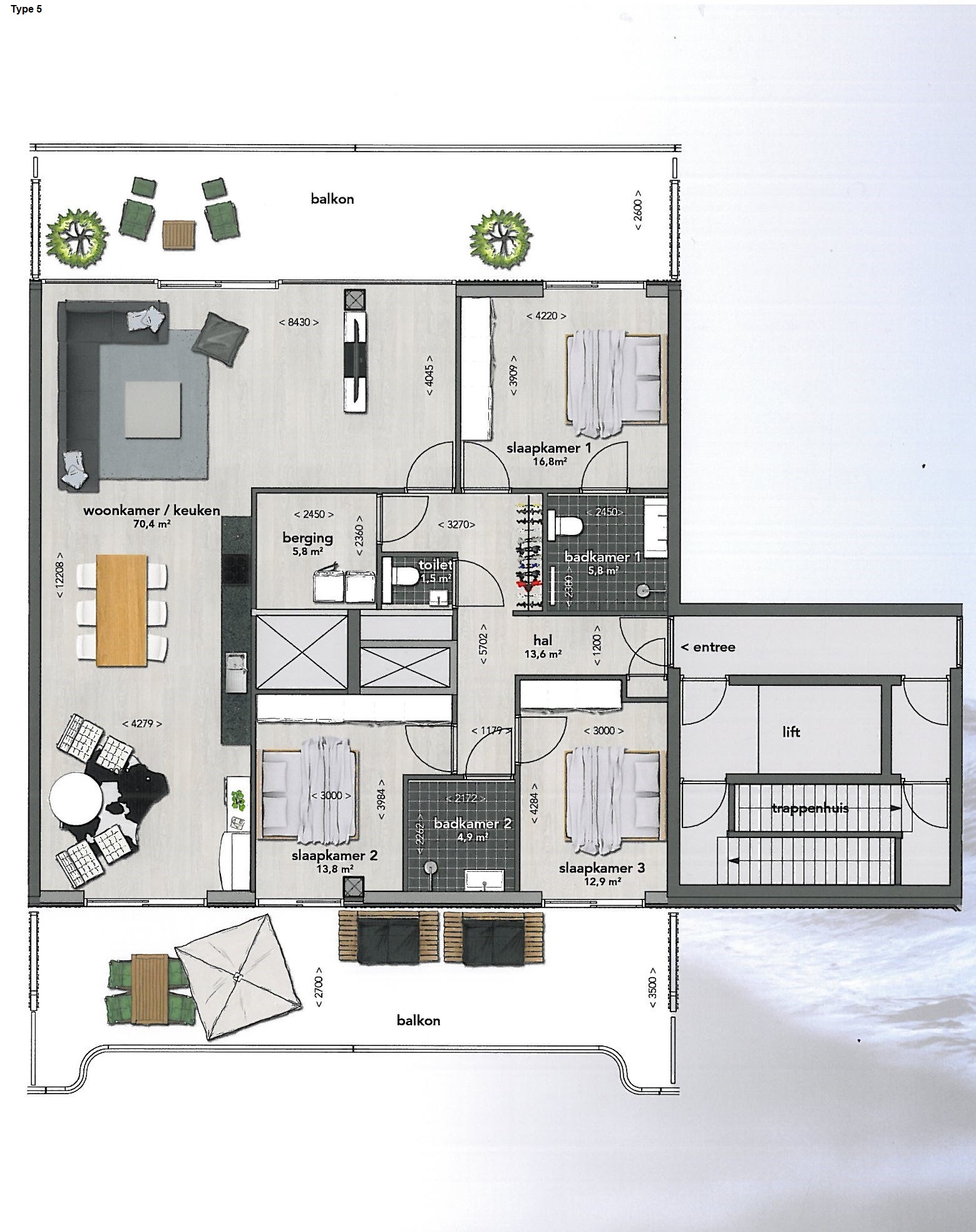 Type 5 gelegen aan zee- en havenzijde, met 3 slaapkamers