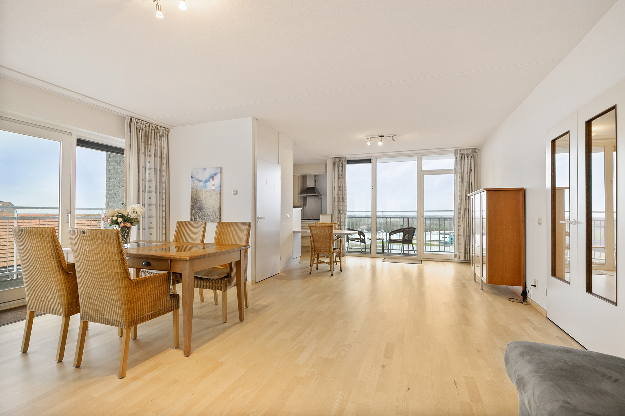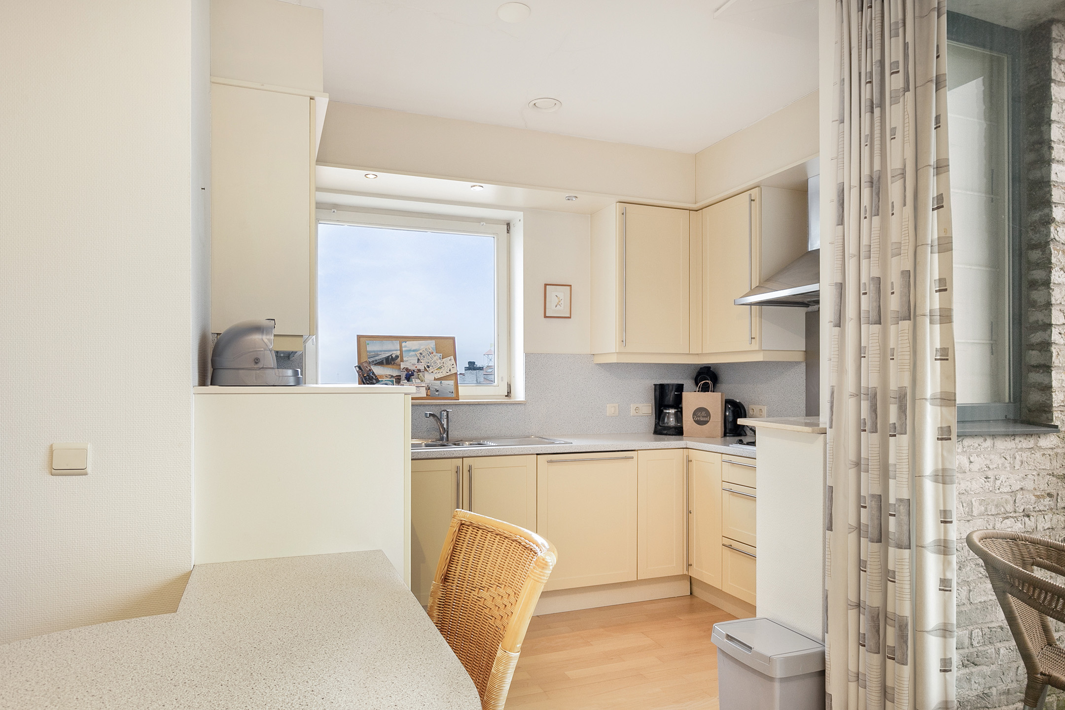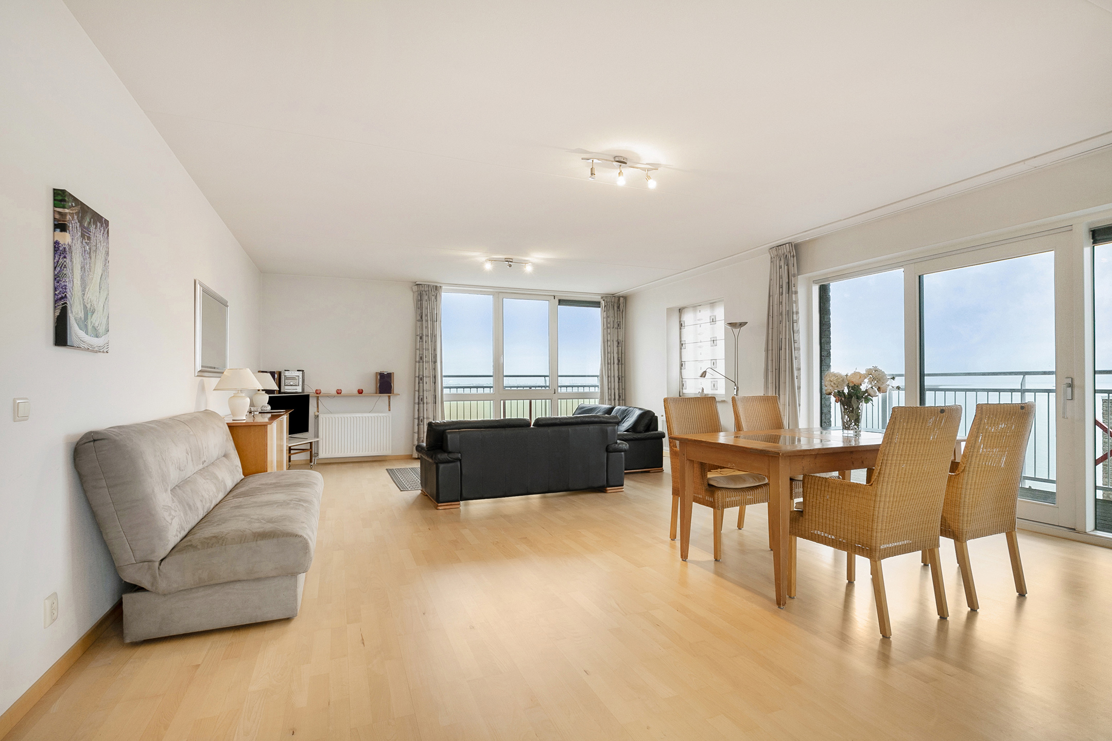 Bij binnenkomst betreedt u de hal, die toegang biedt tot de ruime woonkamer met twee balkons, één aan de zeezijde en de andere aan landzijde. De woonkamer is voorzien van grote raampartijen, waardoor u prachtig uitzicht hebt op de Westerschelde en het achterland van Breskens. Daarnaast beschikt de woonkamer over een open inbouwkeuken, compleet uitgerust met een gaskookplaat, afzuigkap, magnetron en een vaatwasser. Het appartement beschikt tevens over een badkamer en één slaapkamer, vanuit de slaapkamer heeft u uitzicht op het achterland van Breskens. De badkamer beschikt over een douche, wastafel en toilet.