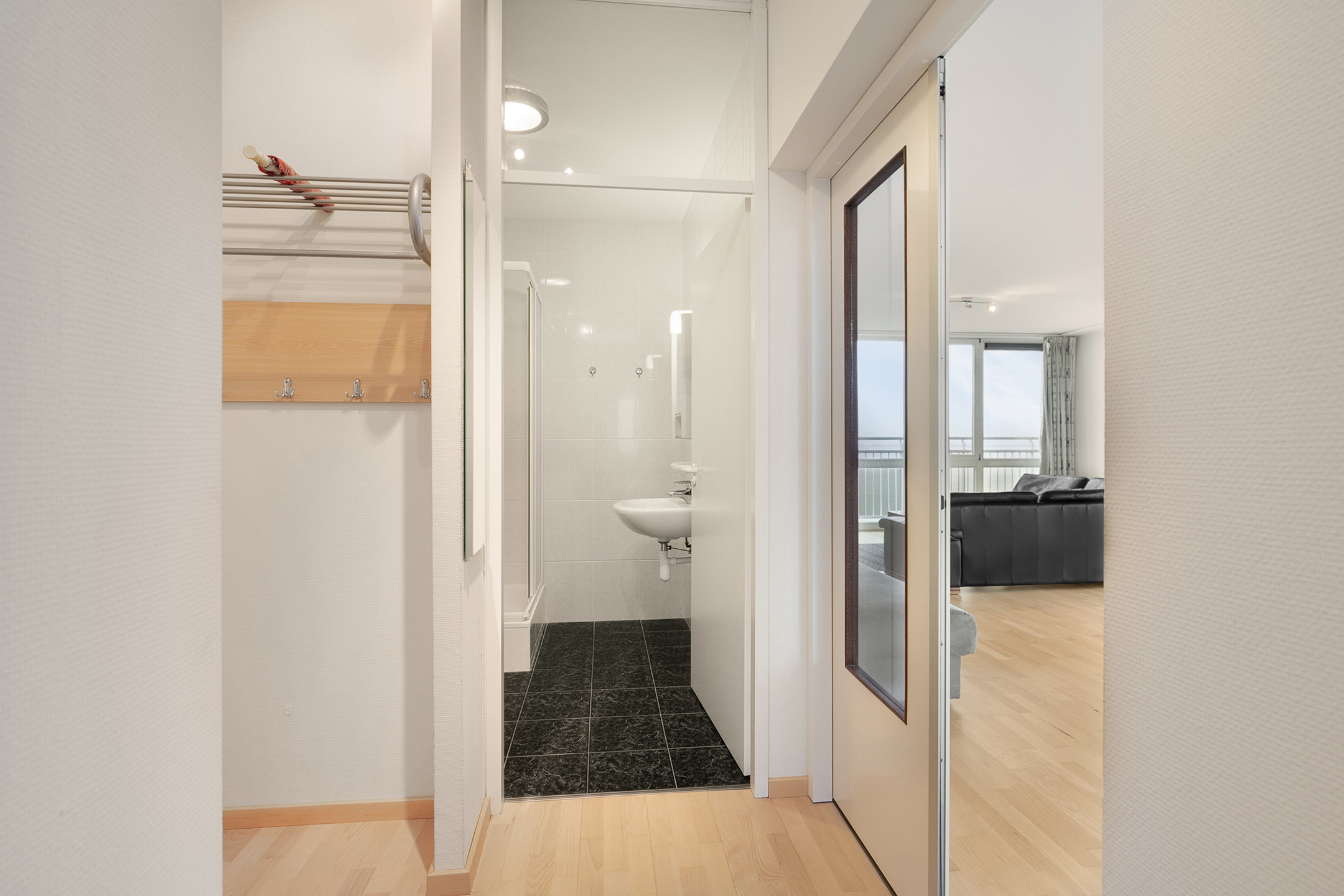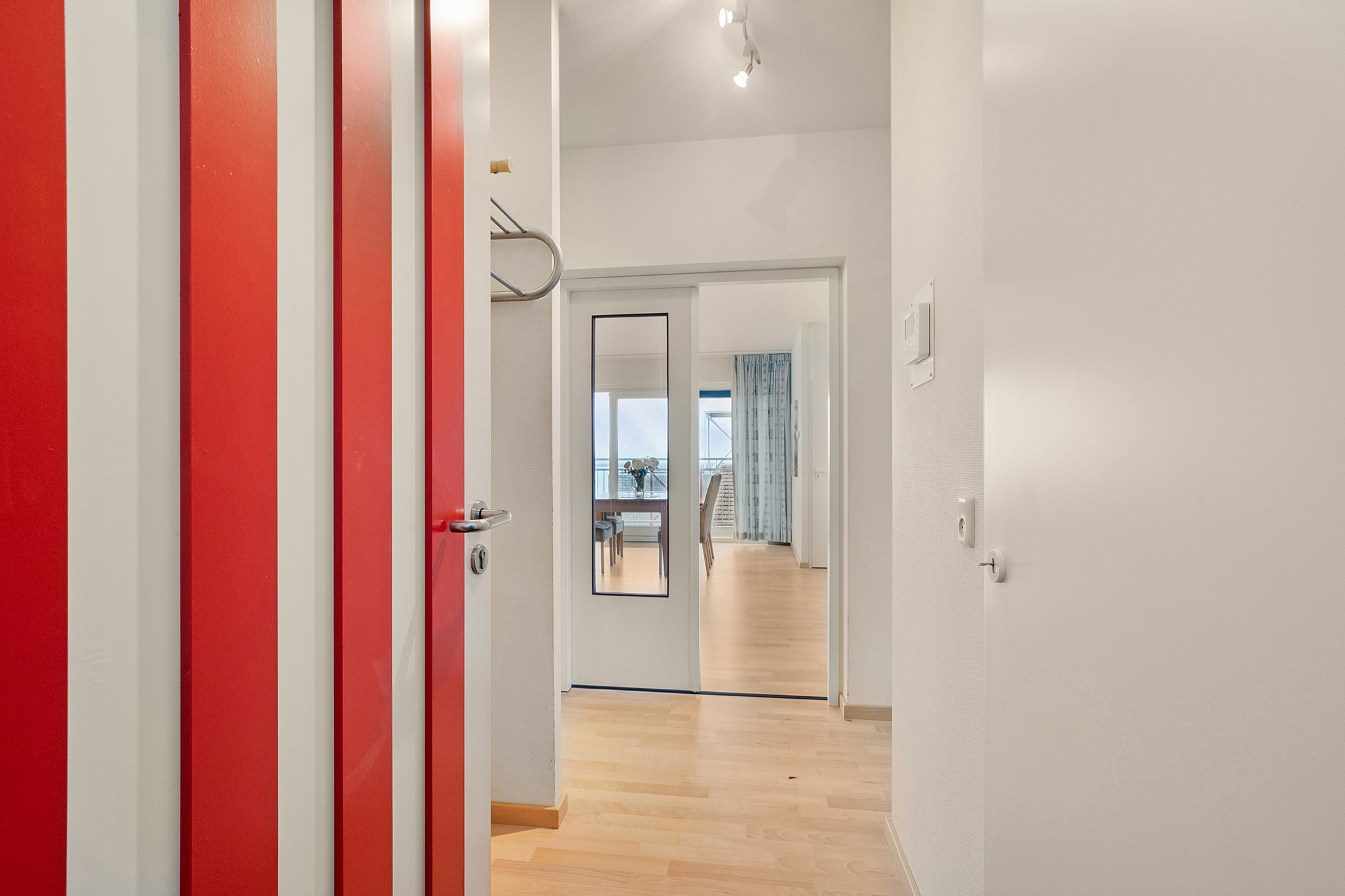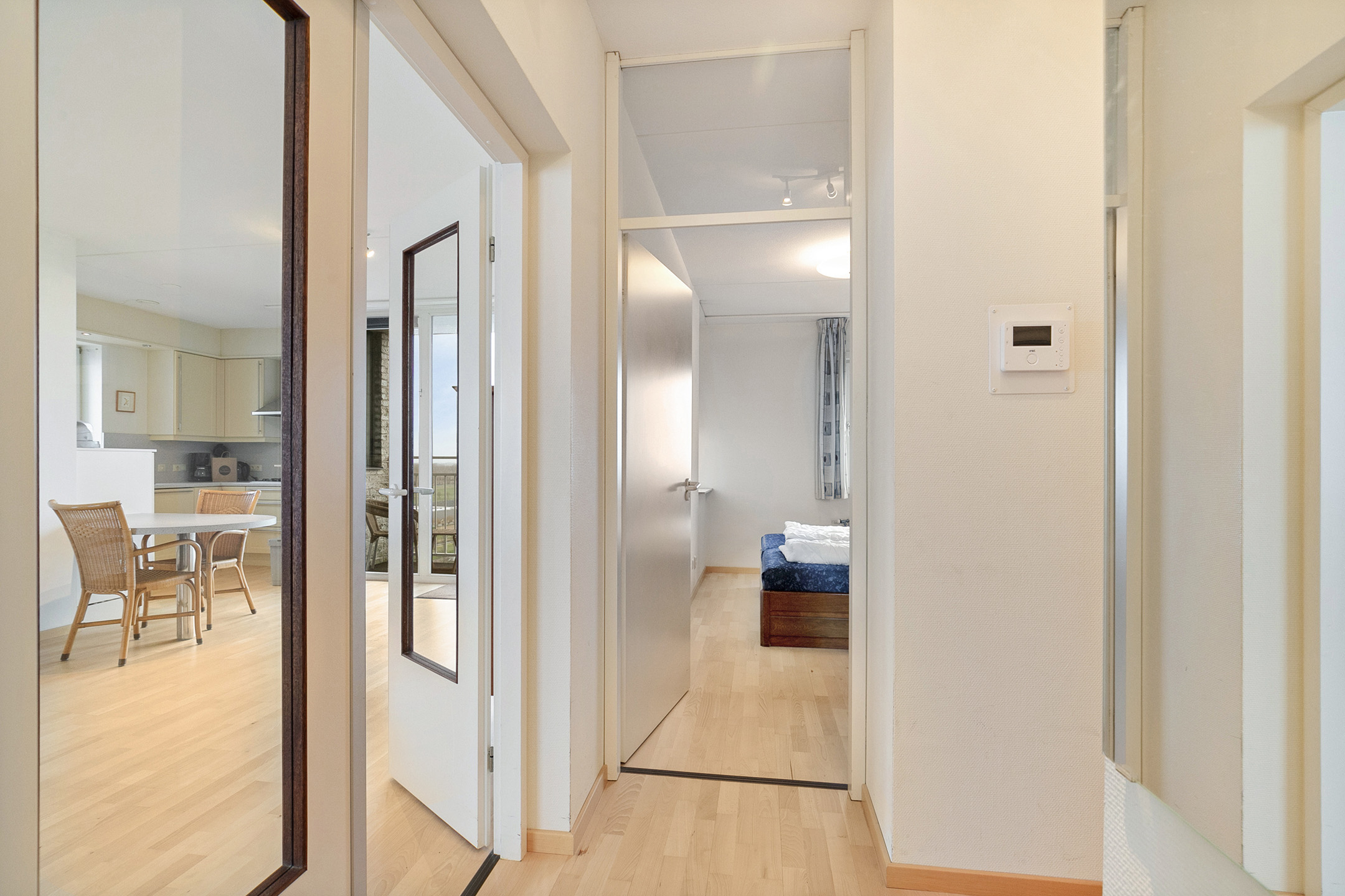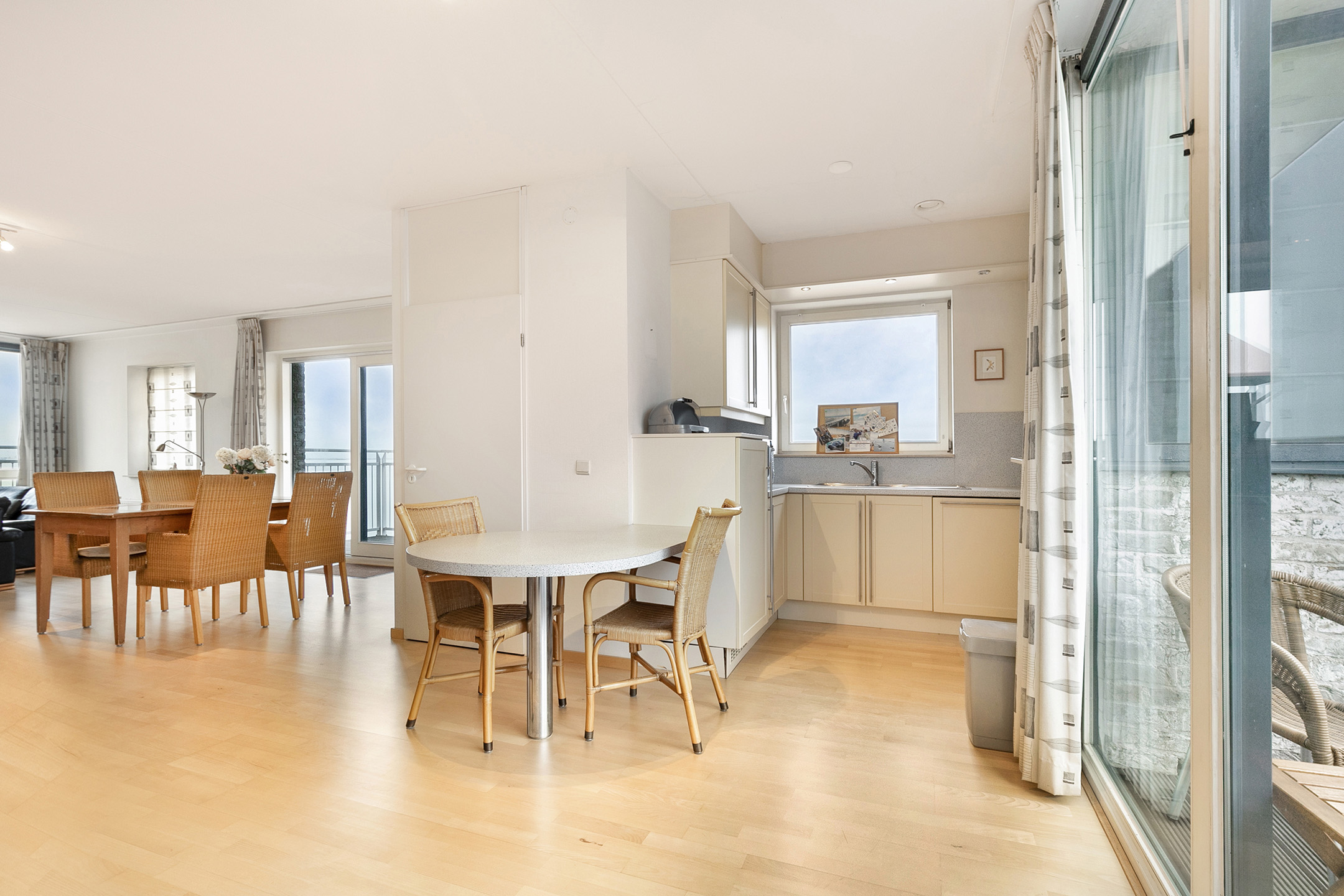 Bij binnenkomst betreedt u de hal, die toegang biedt tot de ruime woonkamer met twee balkons, één aan de zeezijde en de andere aan landzijde. De woonkamer is voorzien van grote raampartijen, waardoor u prachtig uitzicht hebt op de Westerschelde en het achterland van Breskens. Daarnaast beschikt de woonkamer over een open inbouwkeuken, compleet uitgerust met een gaskookplaat, afzuigkap, magnetron en een vaatwasser. Het appartement beschikt tevens over een badkamer en één slaapkamer, vanuit de slaapkamer heeft u uitzicht op het achterland van Breskens. De badkamer beschikt over een douche, wastafel en toilet.