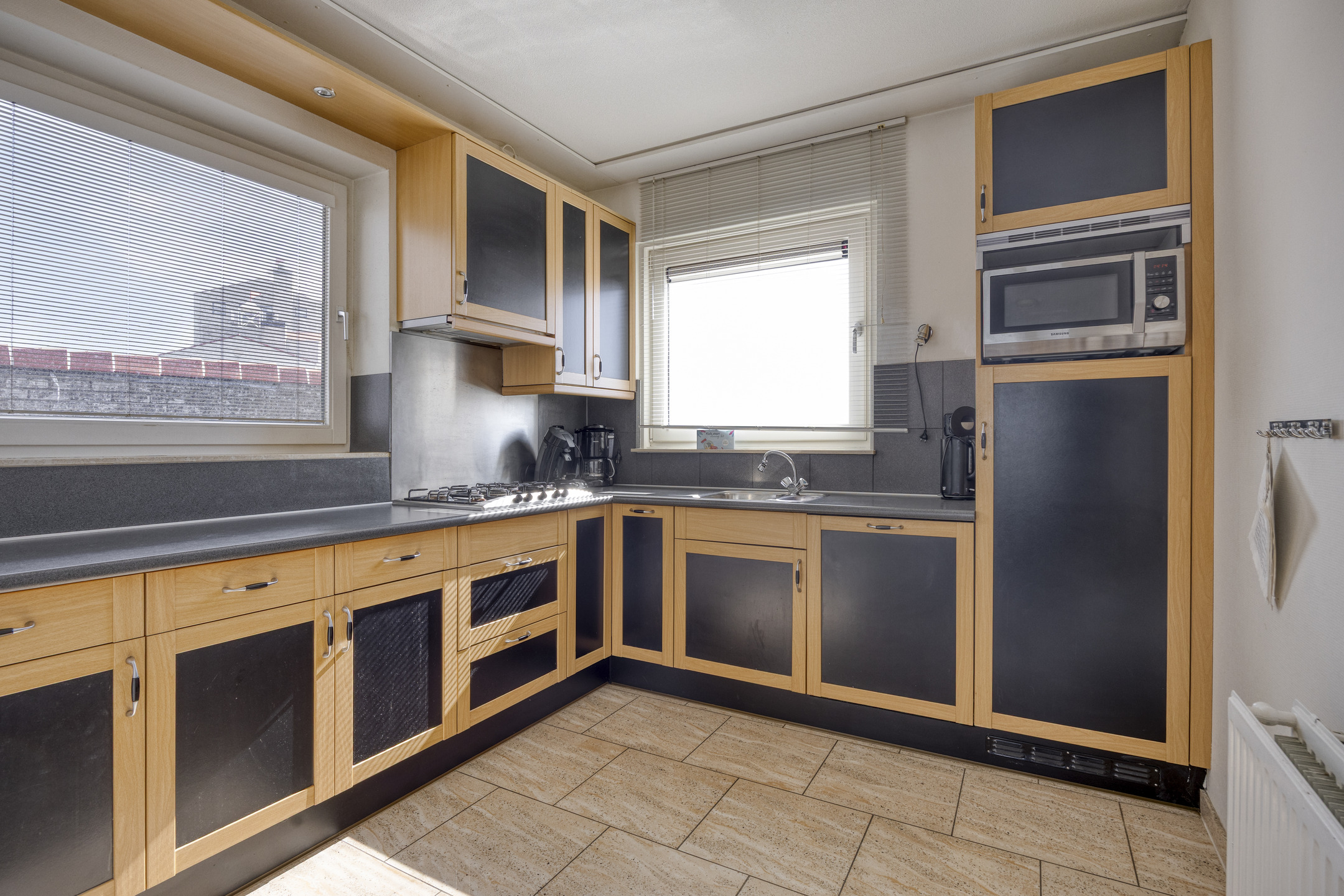 * het keukenraam en raam slaapkamer zeezijde is voorzien van een kunststof kozijn;
