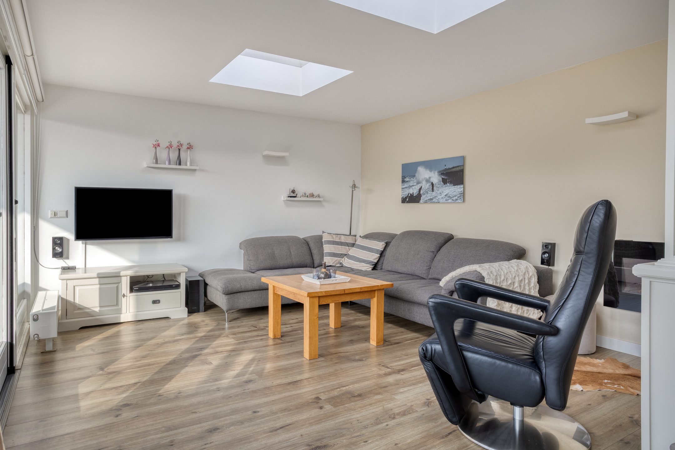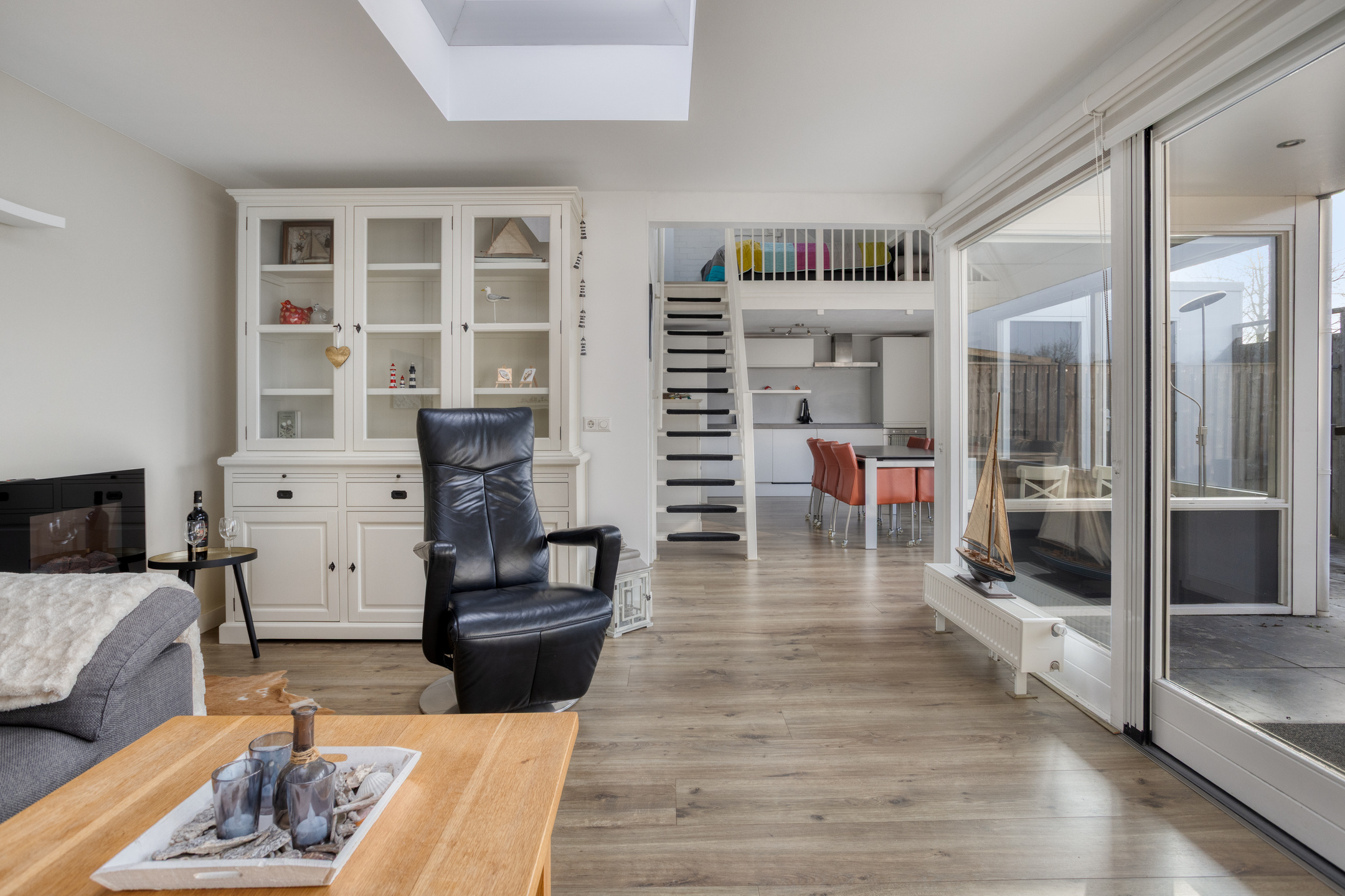 Via de openslaande deuren betreedt u de woning en komt u in de woonkamer. De woonkamer met sfeerhaard bevindt zich in de uitbouw en is voorzien van dakramen, waardoor er veel natuurlijk daglicht binnenvalt. In open verbinding bevindt zich de eetkamer met open keuken.