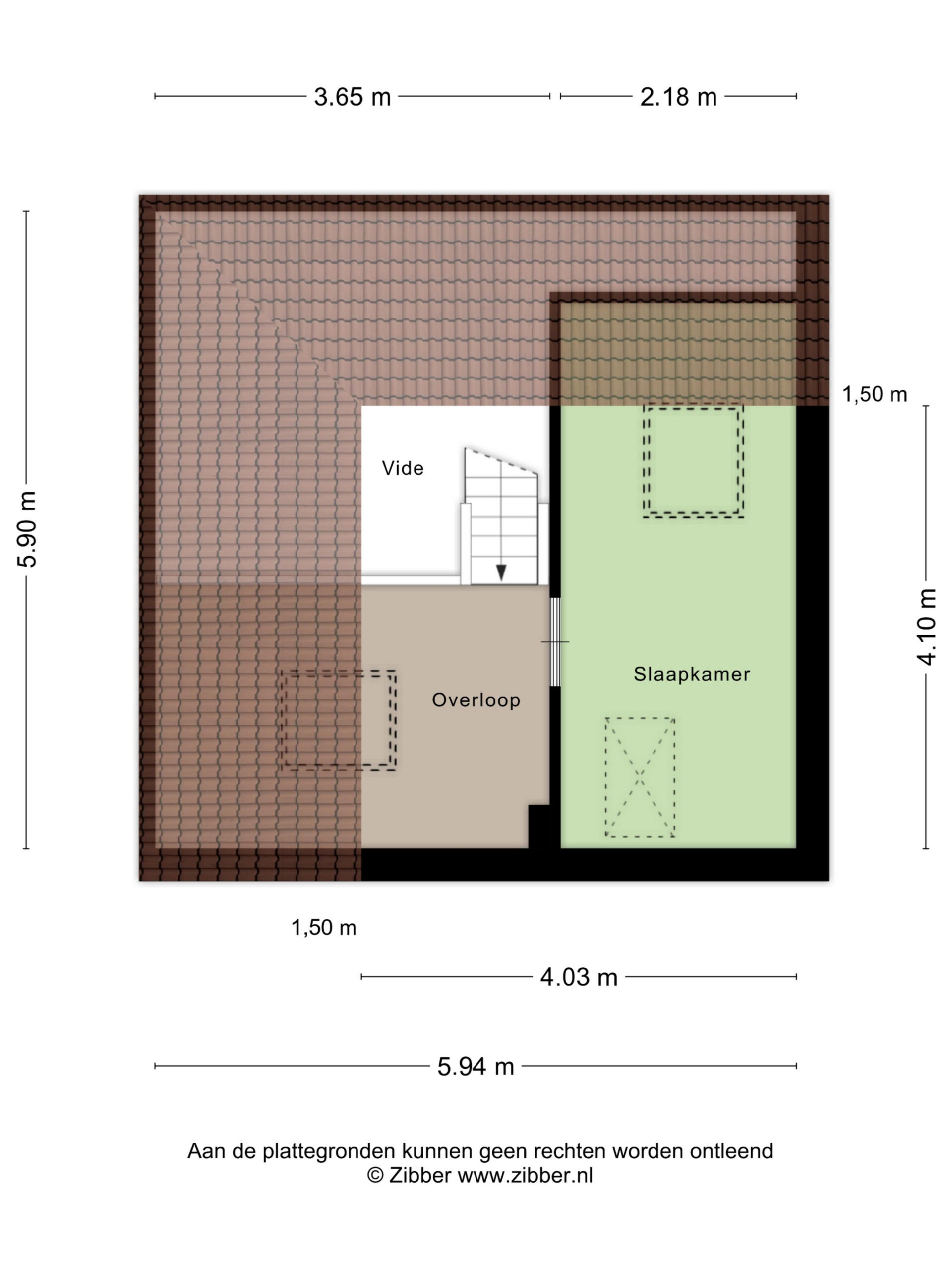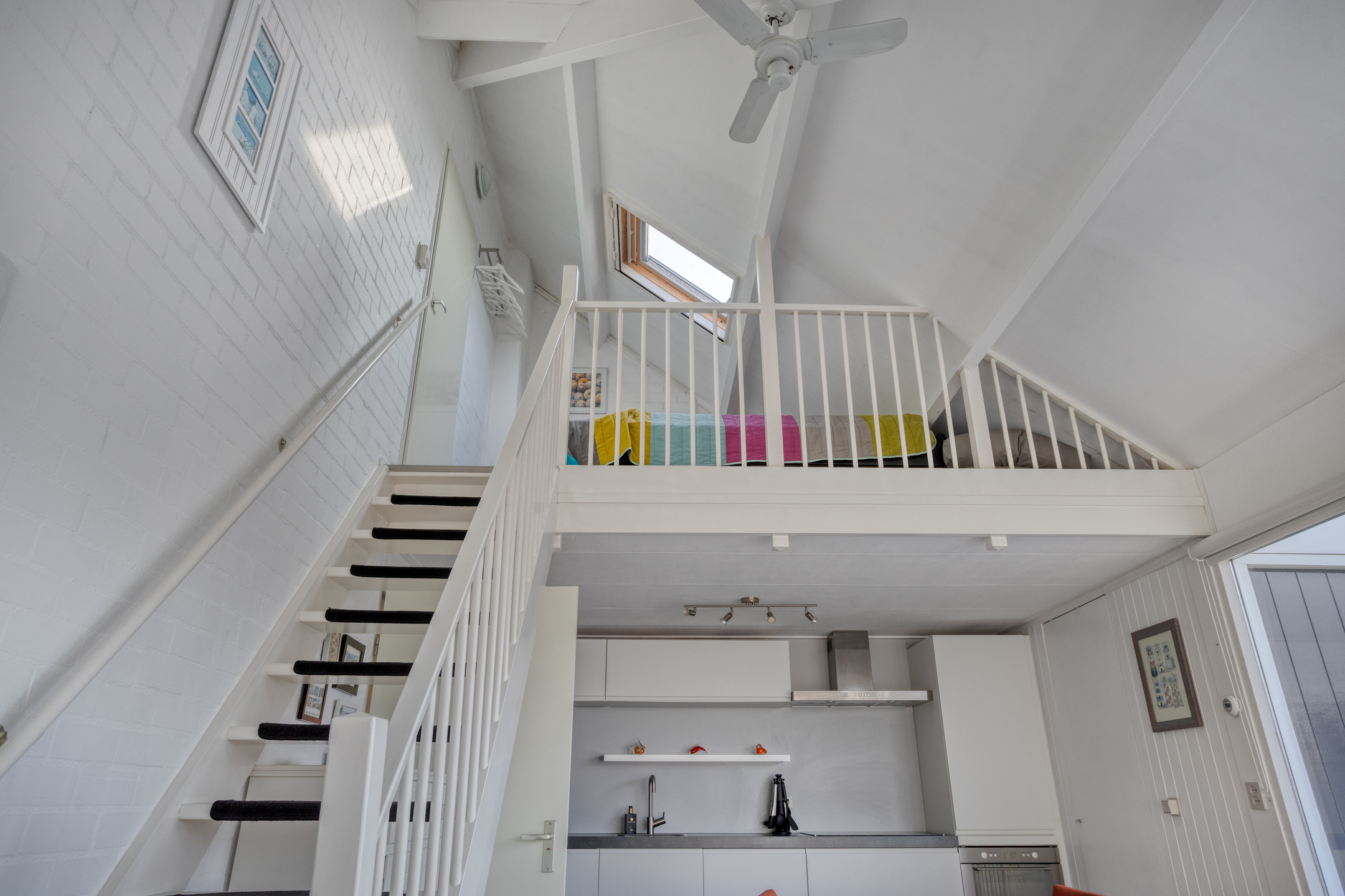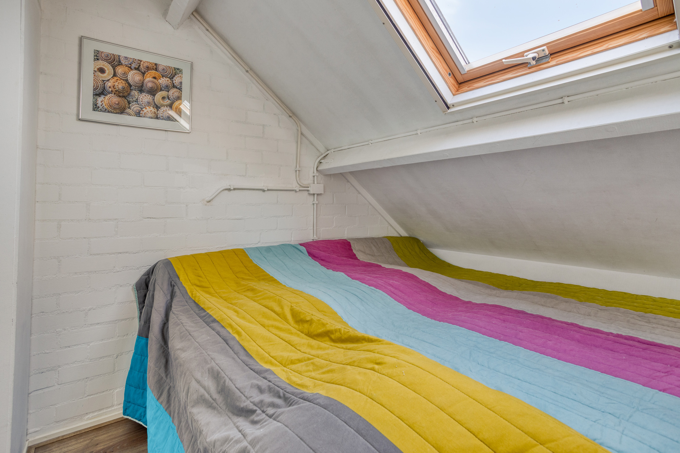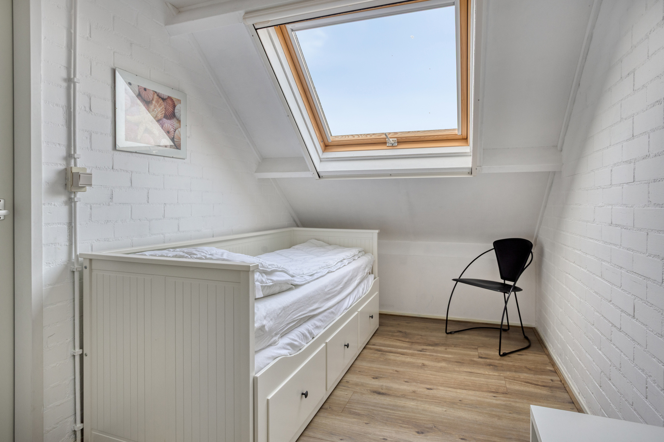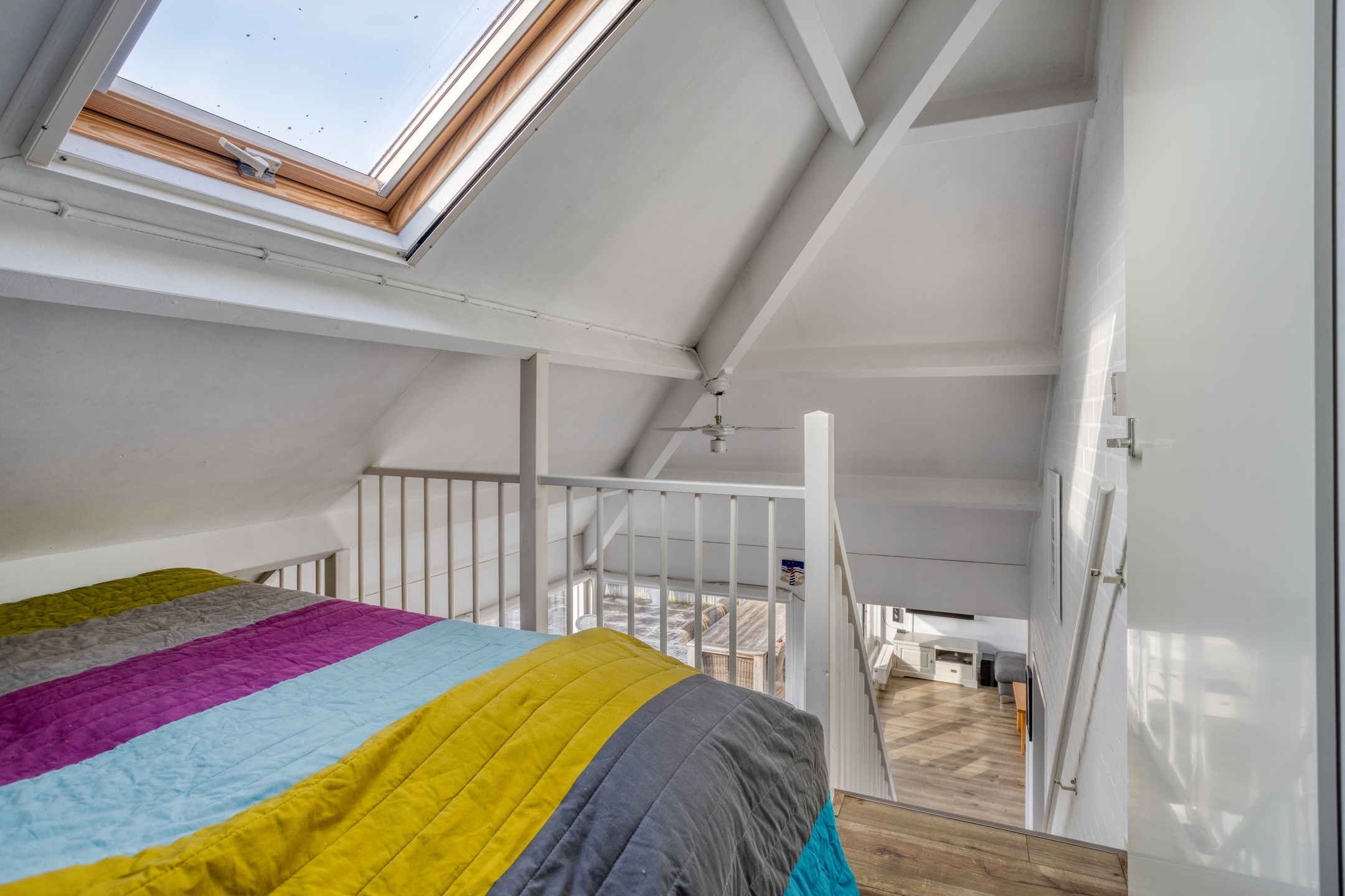 Via de trap in de woonkamer bereikt u de overloop met vide en dakraam. Hier bevindt zich de tweede slaapkamer, eveneens voorzien van een dakraam. Beide dakramen zijn vernieuwd in 2012.