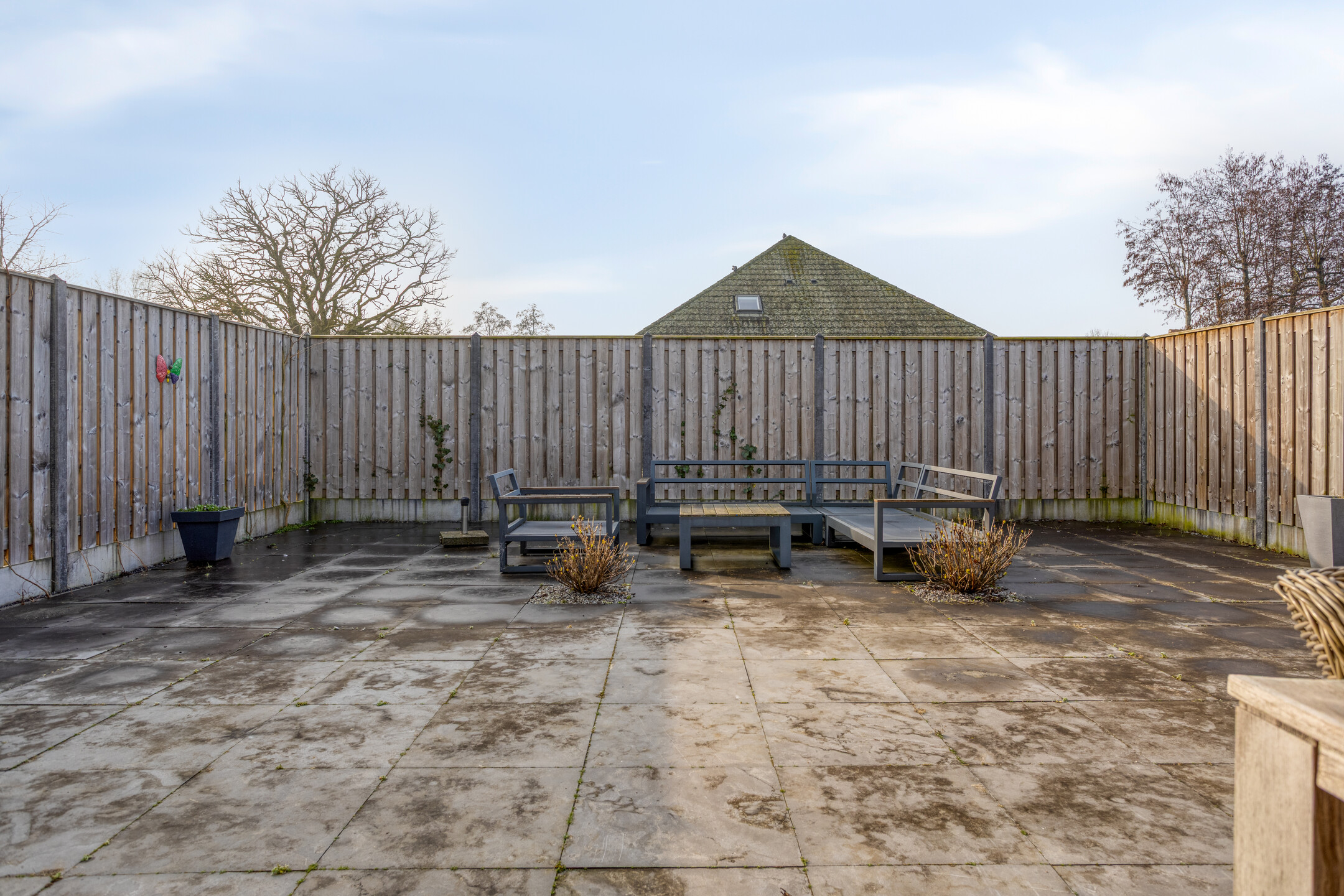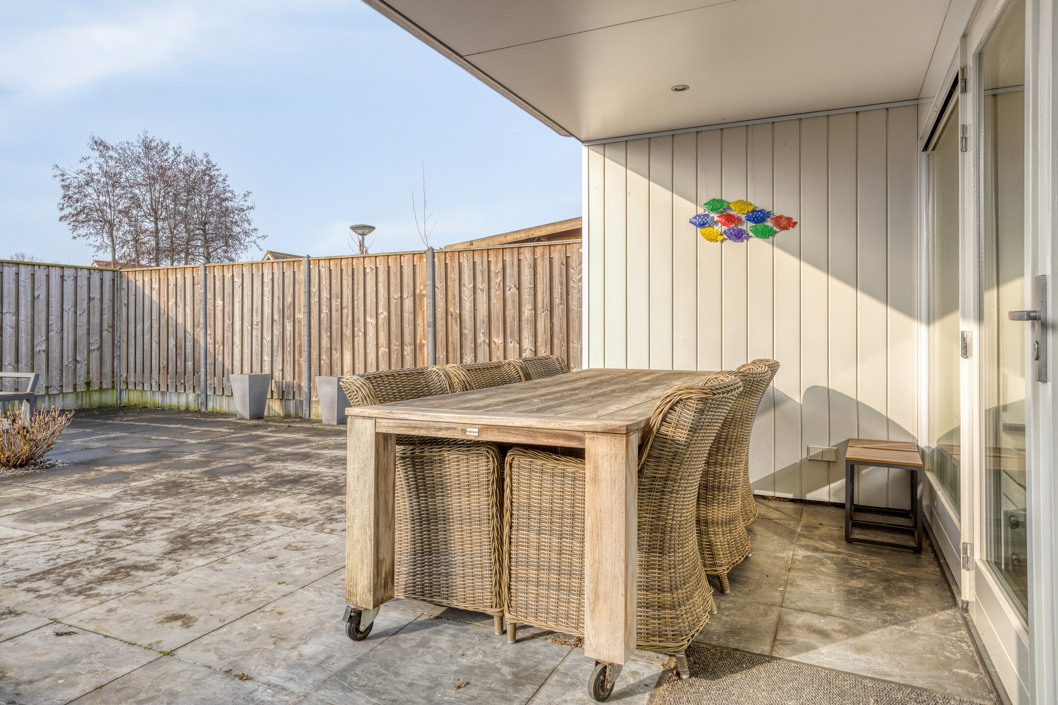 De woning beschikt over een verzorgde en zonnige tuin op het zuiden. Onder de overkapping kunt u beschut genieten van het buitenleven, ongeacht het seizoen. Parkeren is mogelijk op eigen terrein. Daarnaast beschikt de woning over twee aangebouwde bergingen, ideaal voor het opbergen van fietsen, tuinmeubilair of strandspullen.