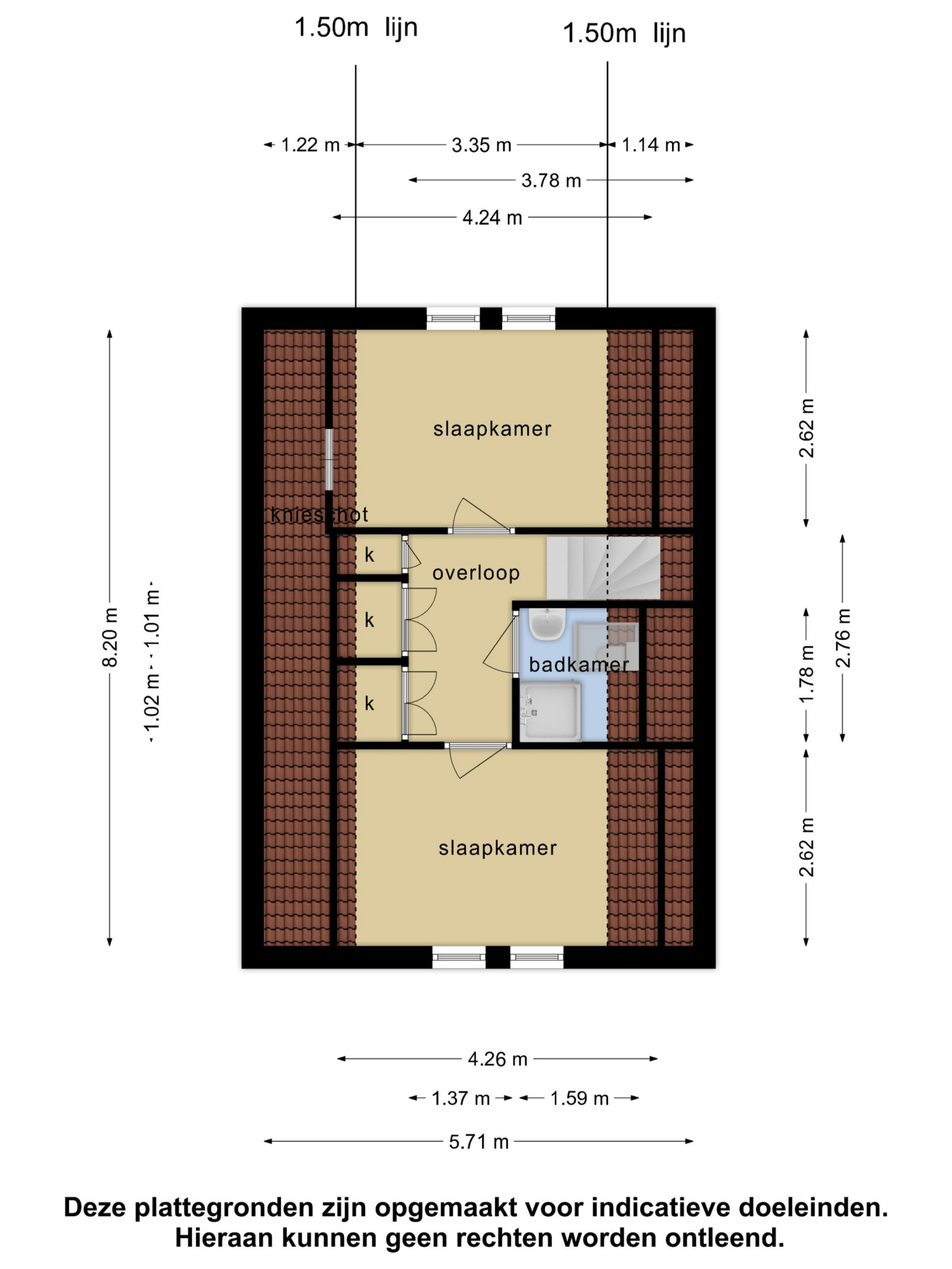 via de trapopgang in de hal treft u de overloop, vanaf hier zijn de 2 slaapkamers en de badkamer te bereiken. De badkamer beschikt over een douche, wastafel en toilet.