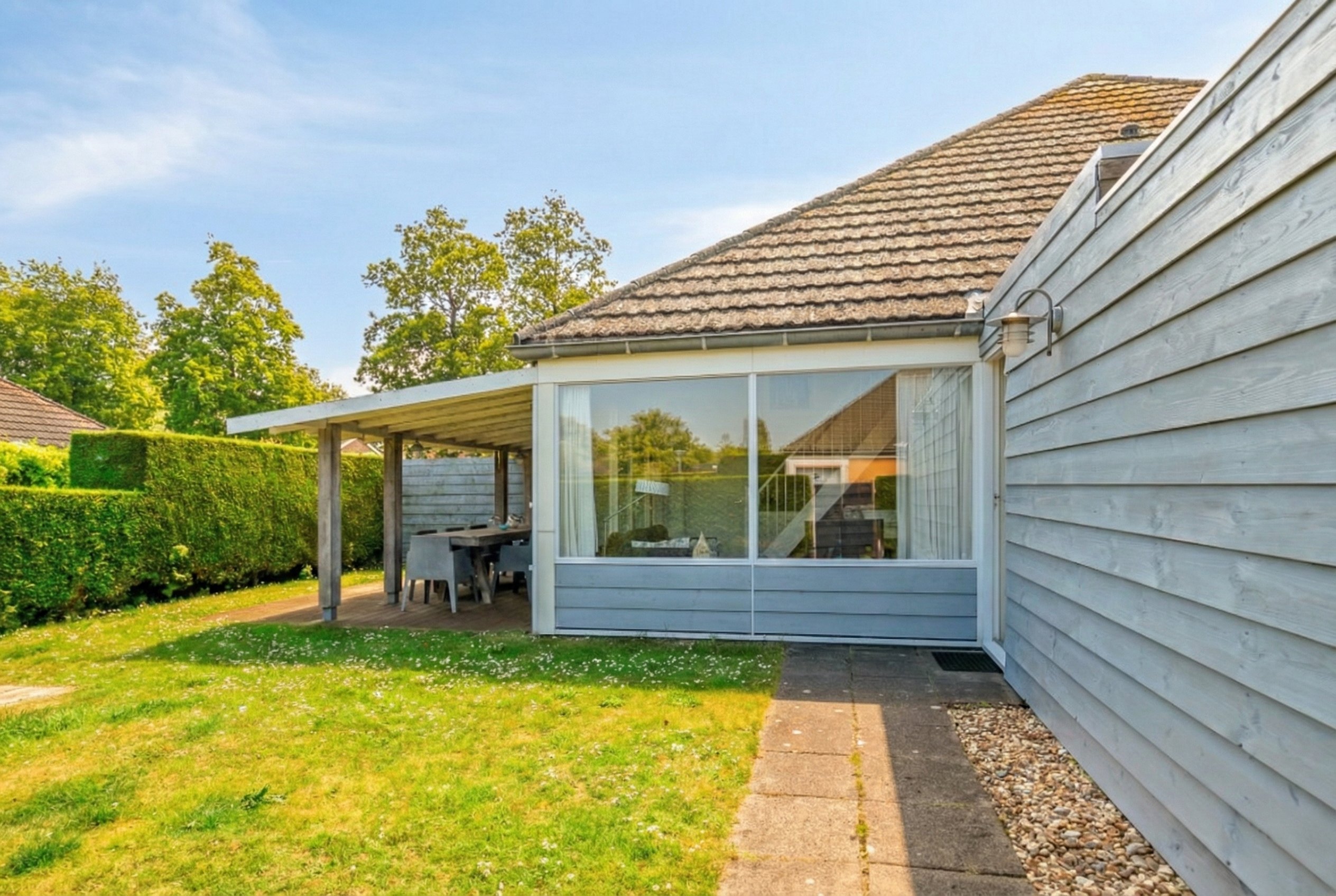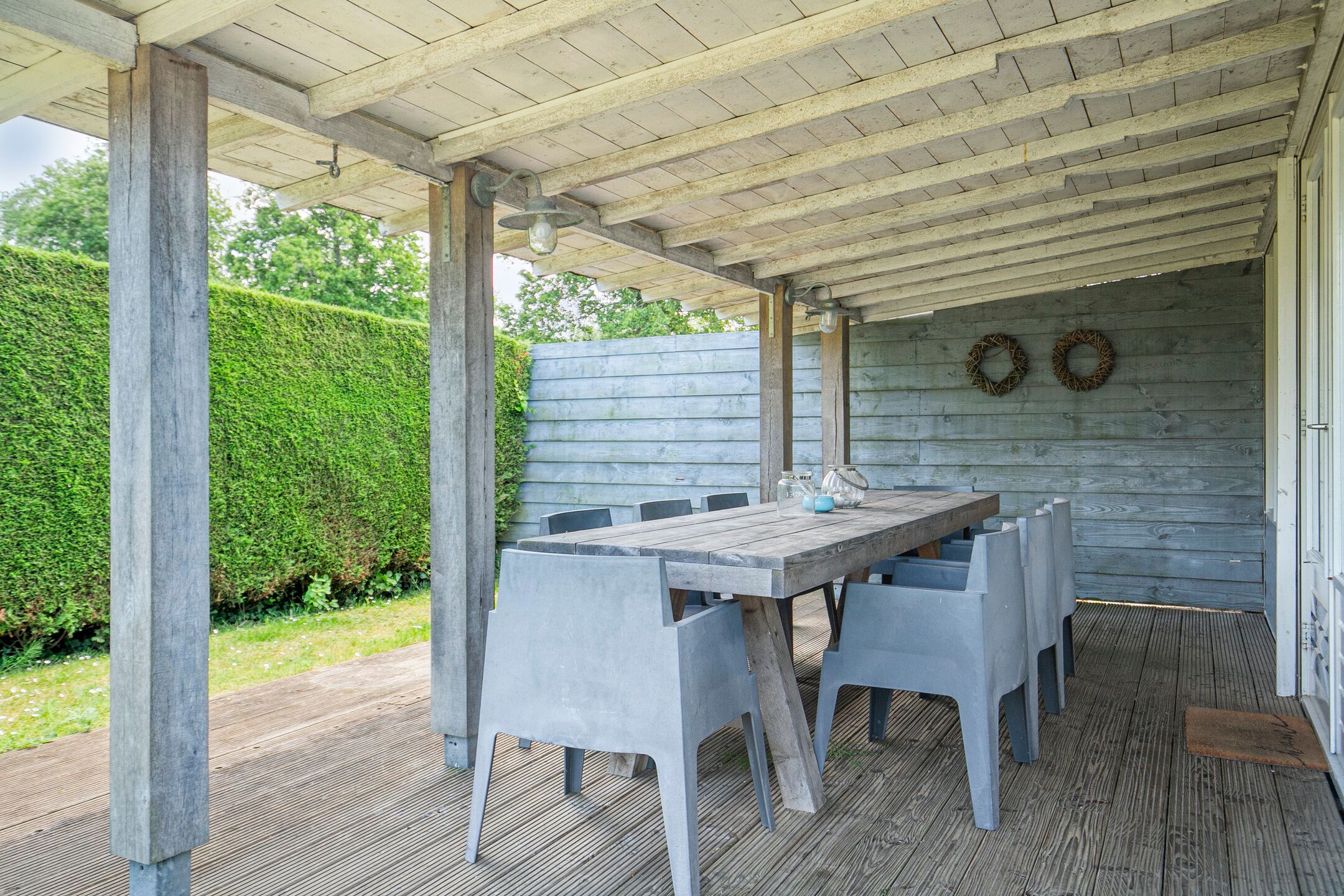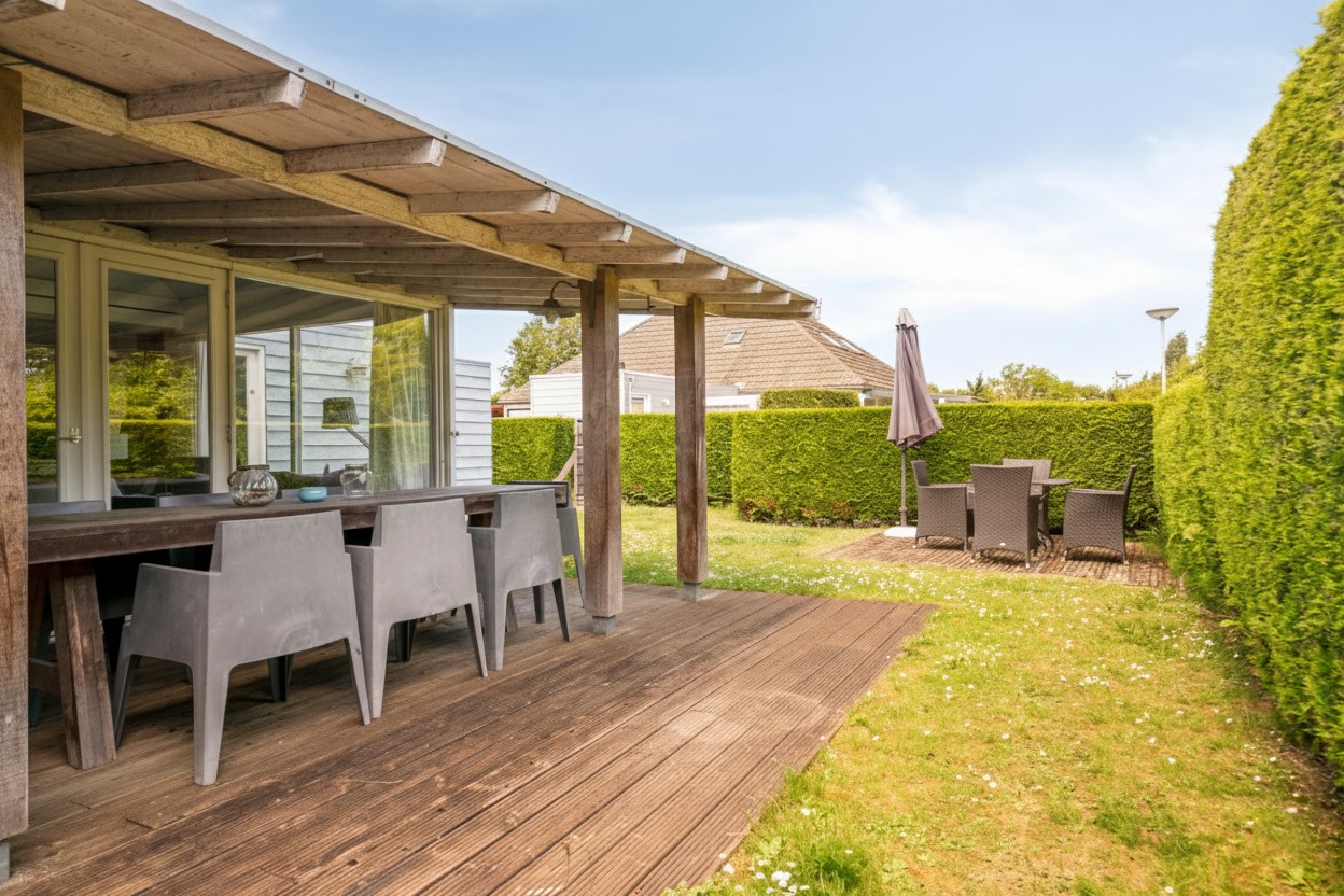De woning beschikt over een verzorgde, zonnige tuin met een oostelijke ligging. Onder de ruime overkapping geniet u beschut van het buitenleven, ongeacht het seizoen. Parkeren kan gemakkelijk op eigen terrein. Een aangebouwde berging biedt praktische opbergruimte voor fietsen, tuinmeubilair of strandspullen.