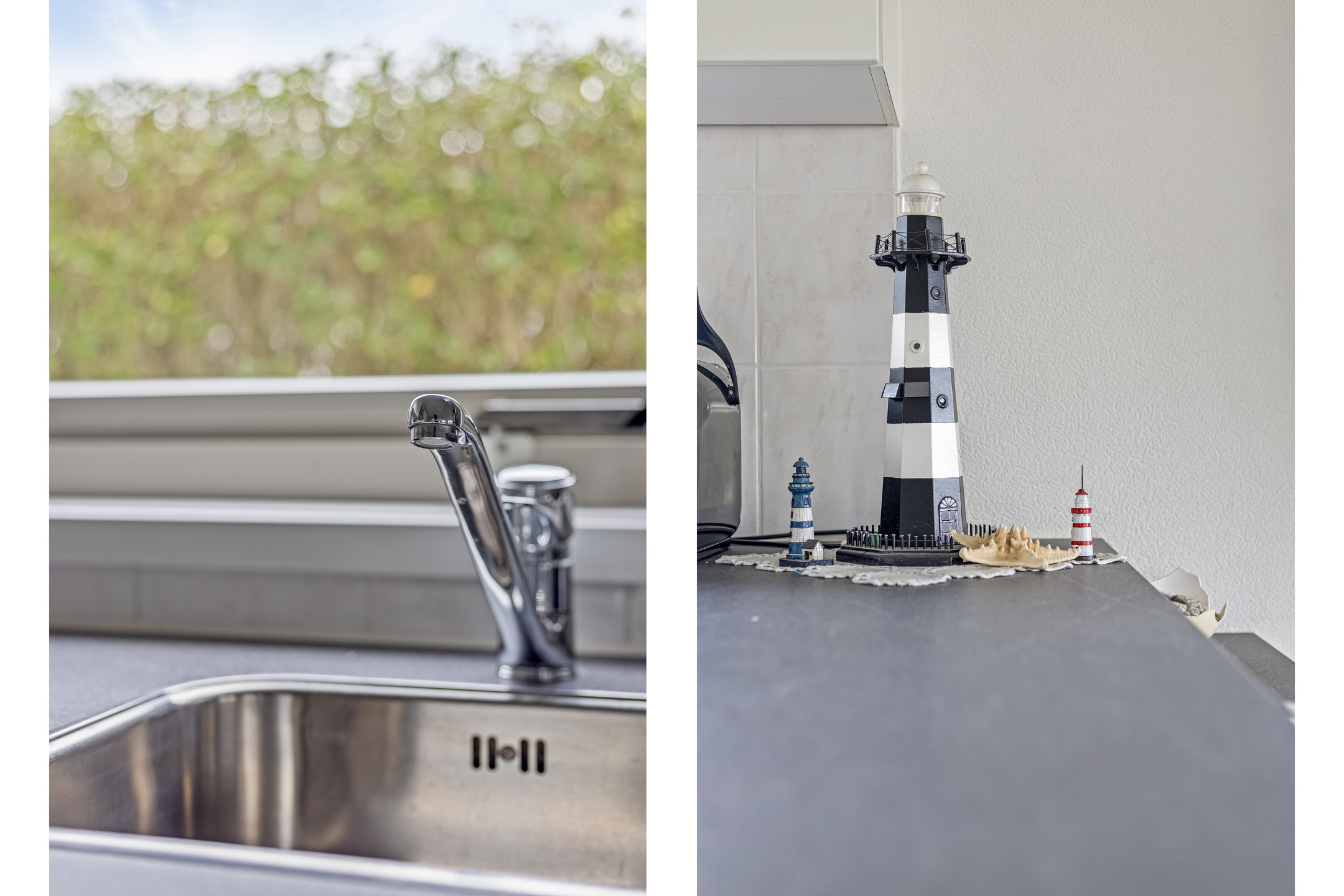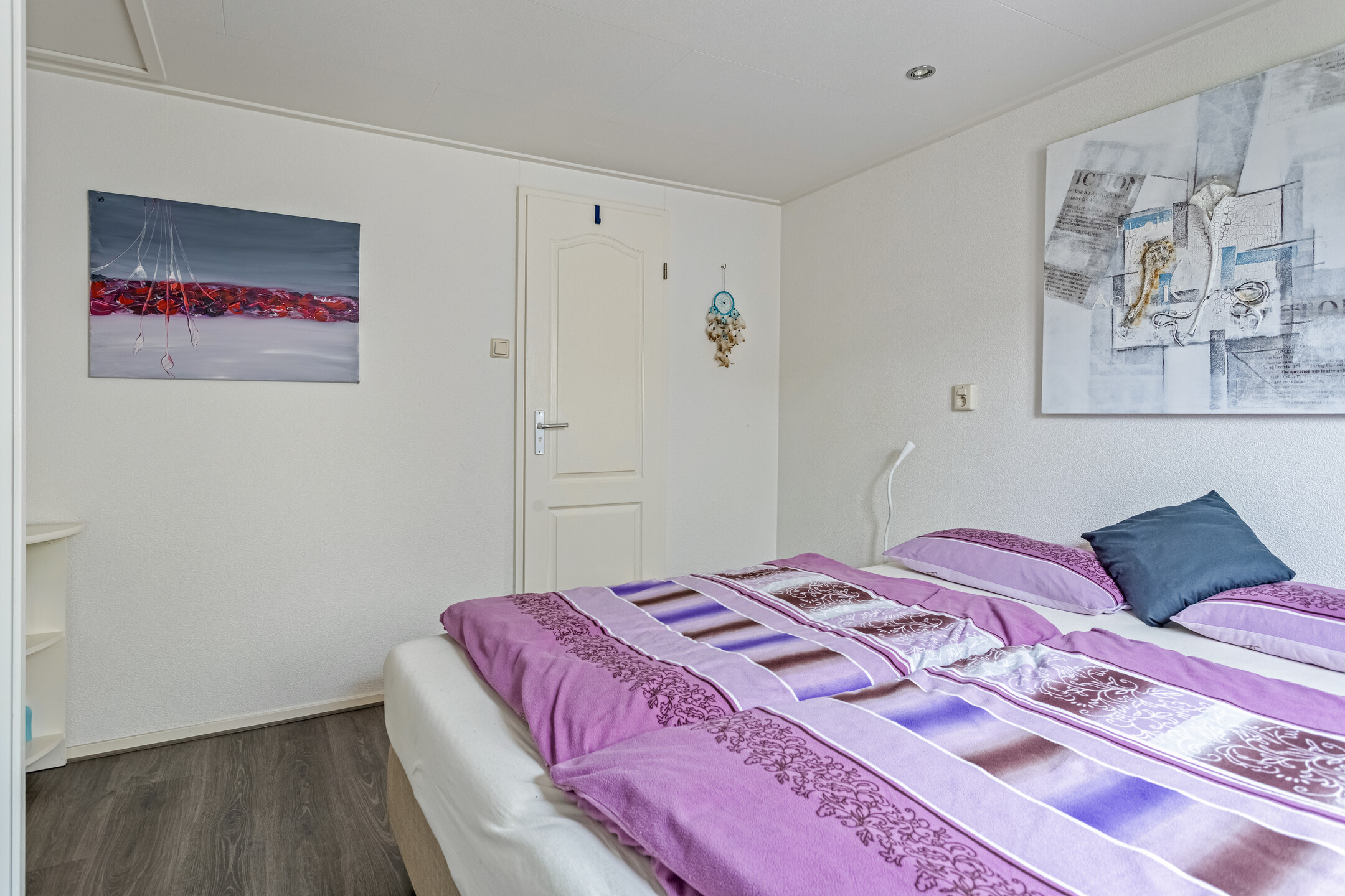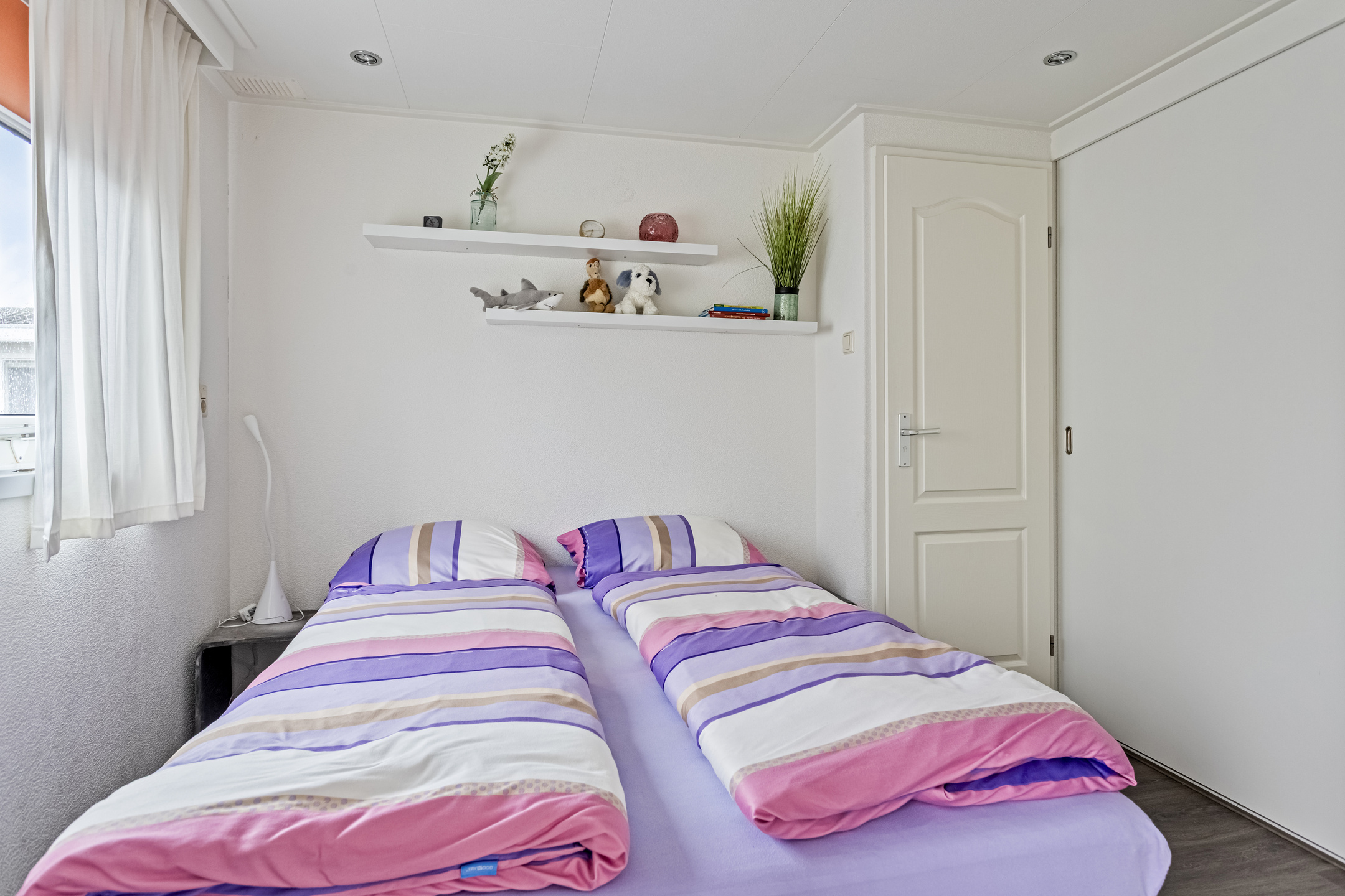 Het chalet beschikt over twee comfortabele slaapkamers. De badkamer is voorzien van een douche, wastafel en toilet. Daarnaast is er een handige bijkeuken met extra bergruimte en een tweede toegang tot buiten. Vanuit de bijkeuken is de badkamer eveneens bereikbaar, wat bijzonder praktisch is na een dag op het strand.