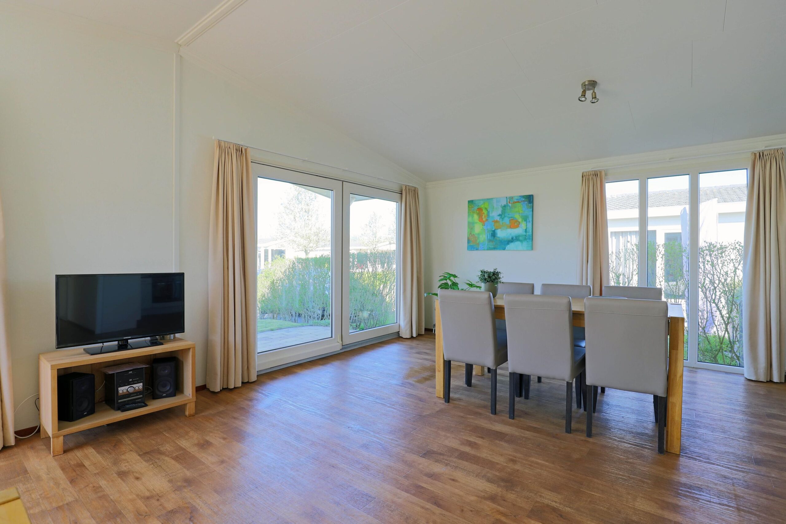 Tuin: het chalet is gelegen op een ruim perceel en beschikt over een oprit met voldoende ruimte voor het parkeren van uw auto. Het terras onder de veranda (te bereiken via de woonkamer) is gelegen op het zuidwesten, hierdoor kunt u zowel van de middag- als avondzon genieten. Naast het chalet is een tuinhuis gelegen, dit tuinhuis is in 2022 vernieuwd.