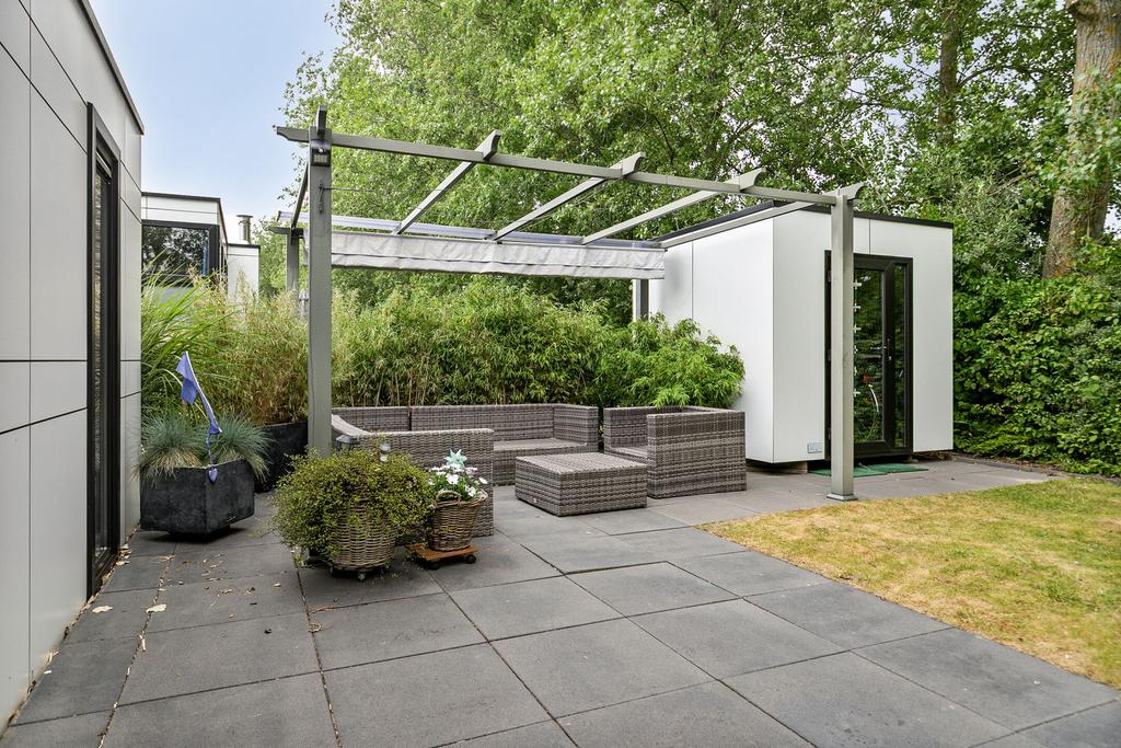 De onderhoudsvriendelijke tuin is fraai aangelegd en biedt volop privacy. Hier vindt u een ruim terras met een pergola voorzien van zonnedoeken en een gezellige buitenhaard. Verder is er een berging aanwezig én parkeergelegenheid op eigen terrein.