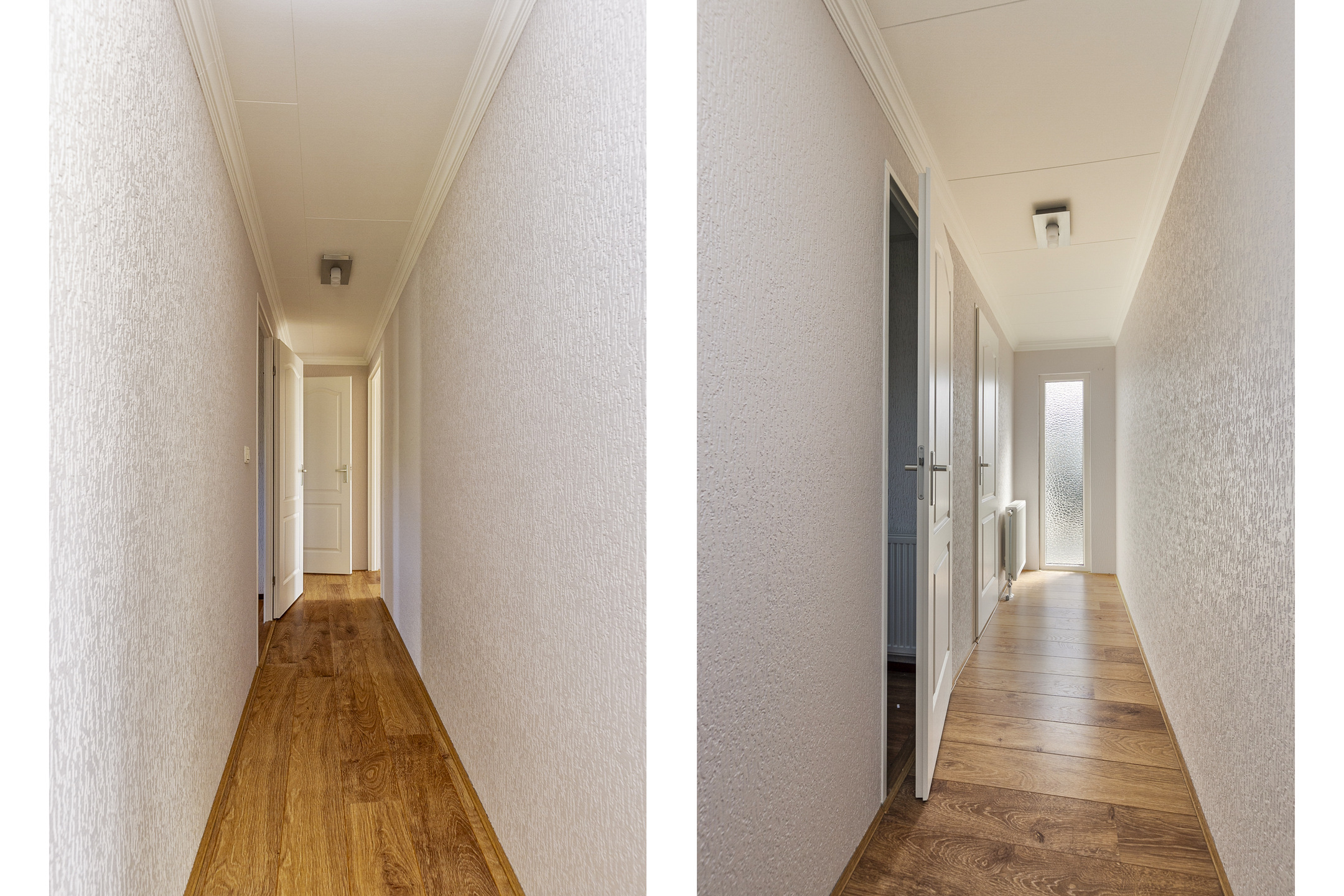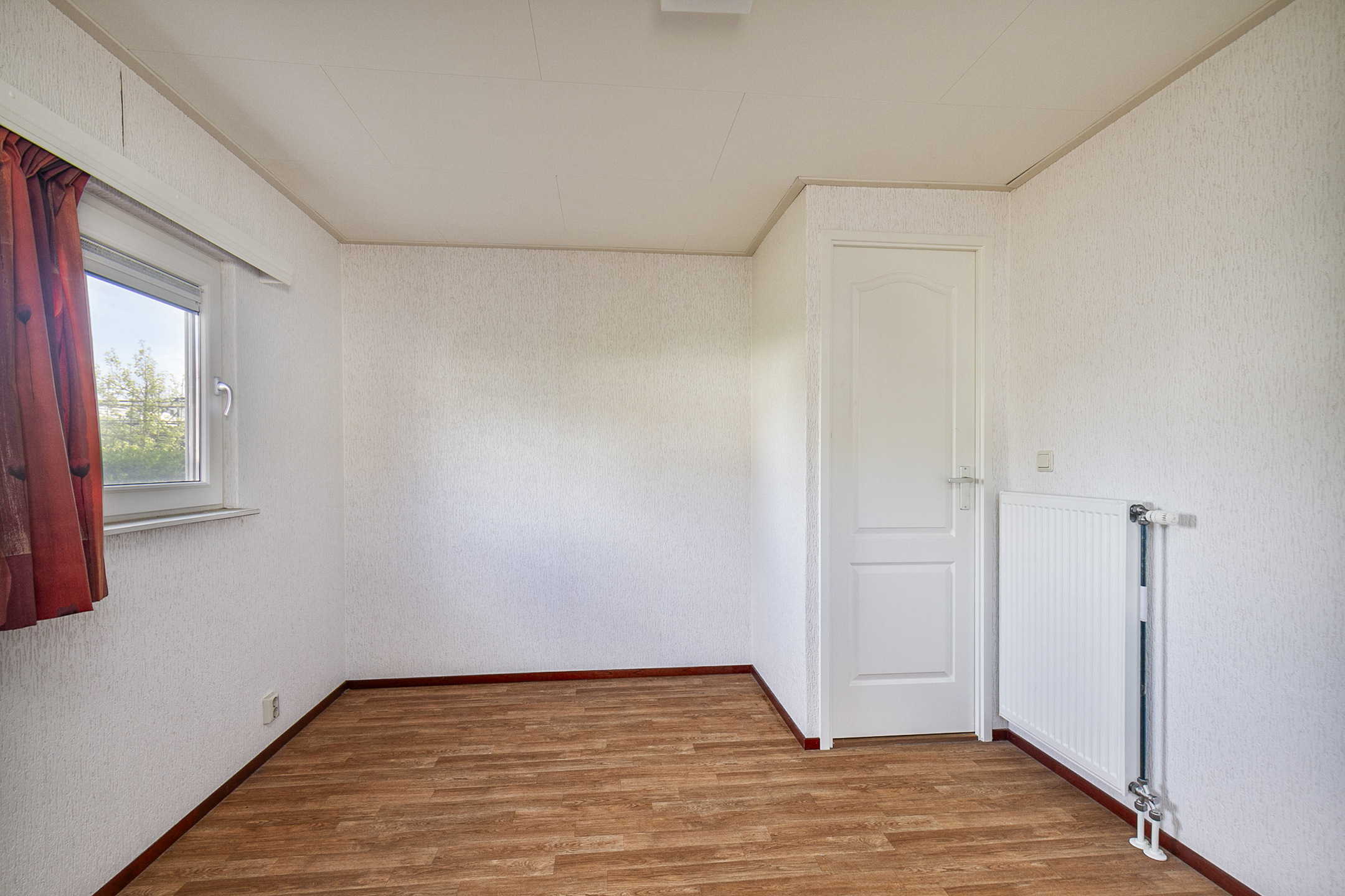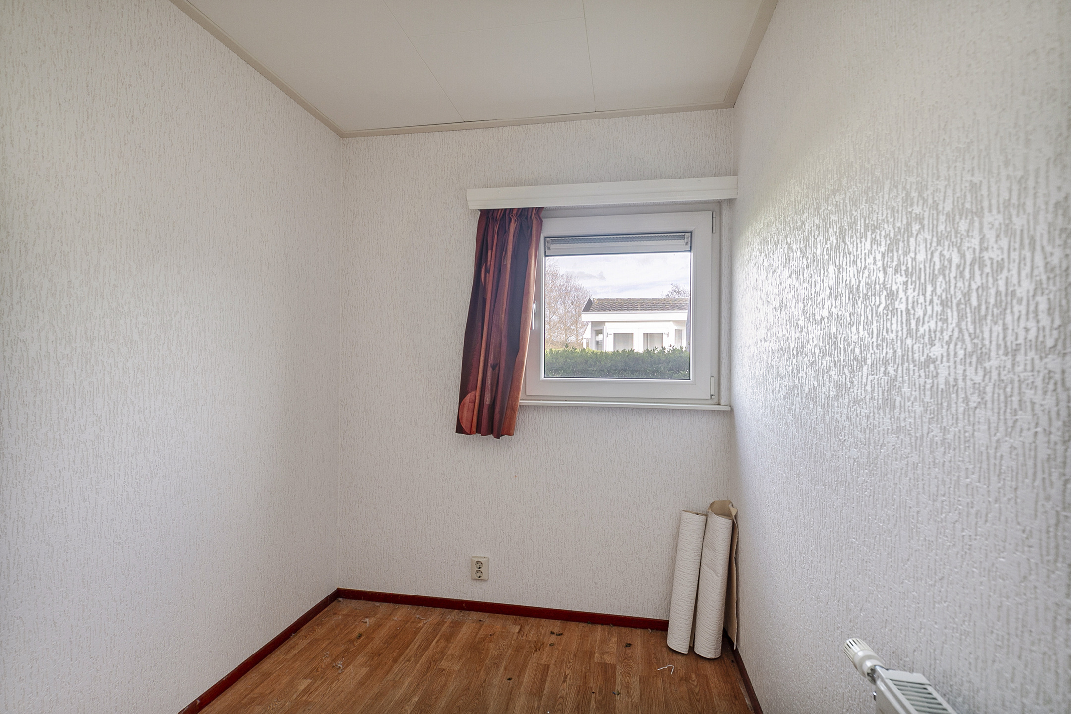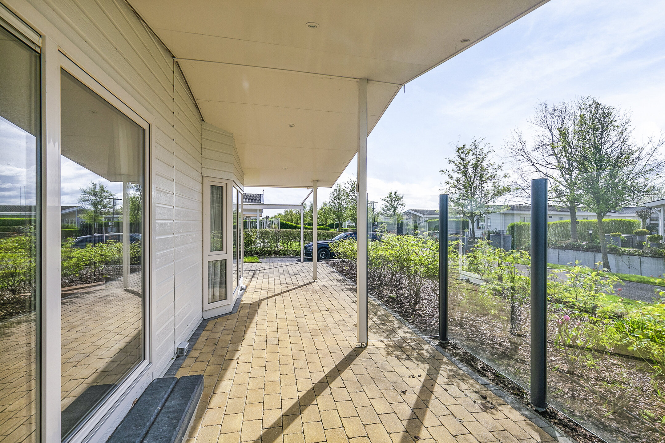 Entree in de hal met toiletruimte en cv-ruimte. Loopt u verder dan bereikt u de ruime woonkamer met open keuken voorzien van 5-pits kookplaat, combi- oven, diepvries, koelkast, vaatwasser en afzuigkap. De woonkamer beschikt tevens over openslaande tuindeuren naar het terras en grote raampartijen welke zorgen voor genoeg lichtinval. Daarnaast beschikt chalet over een hal met toegang tot de 3 slaapkamers en de badkamer met douche, wastafelmeubel en toilet.