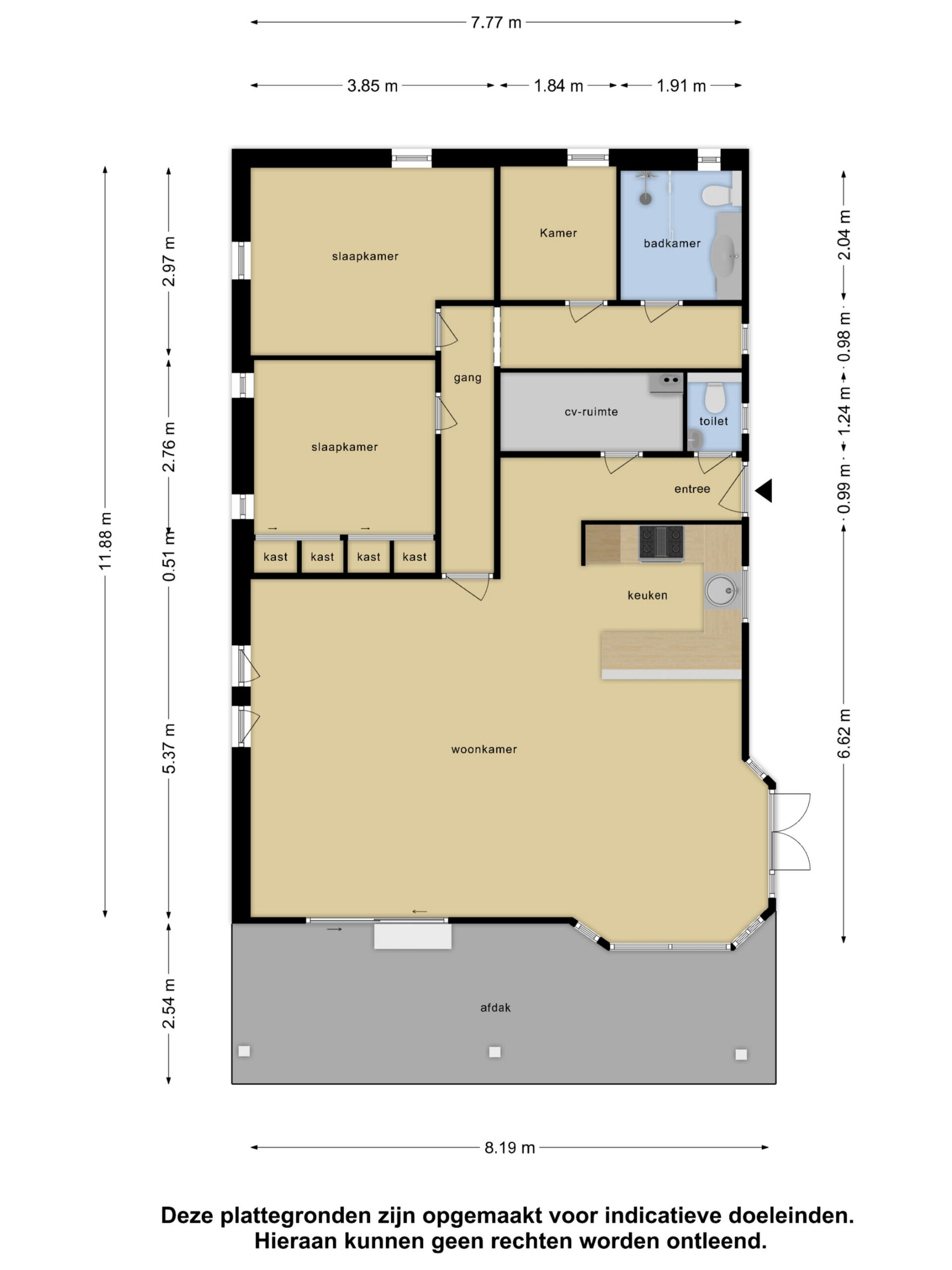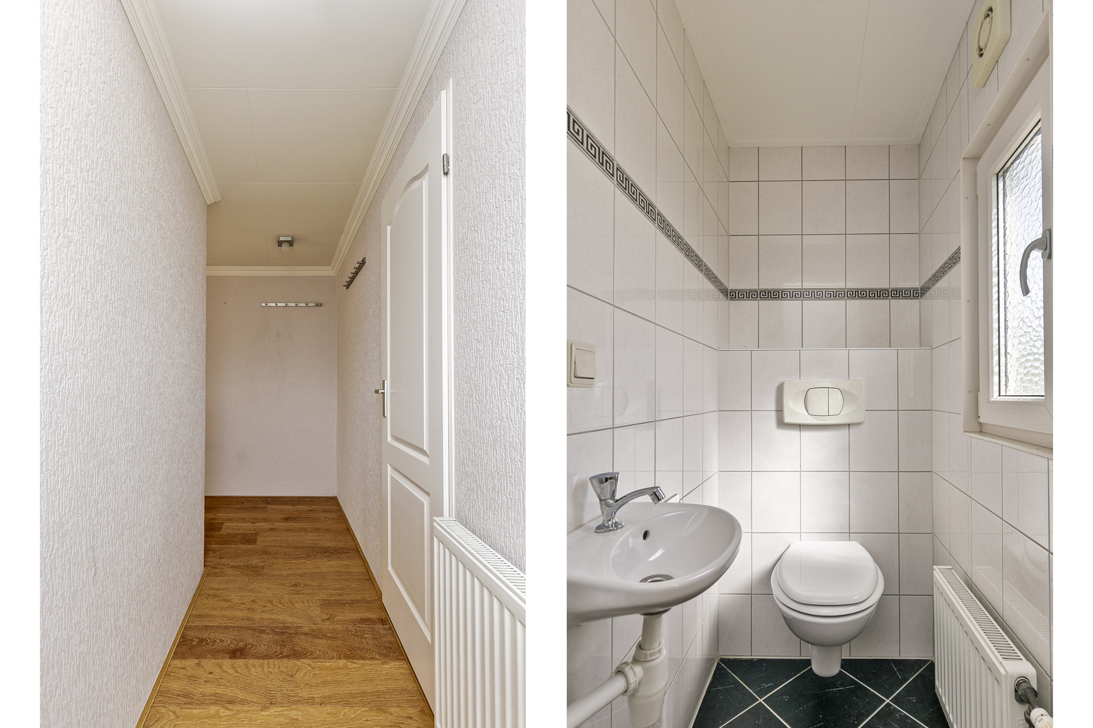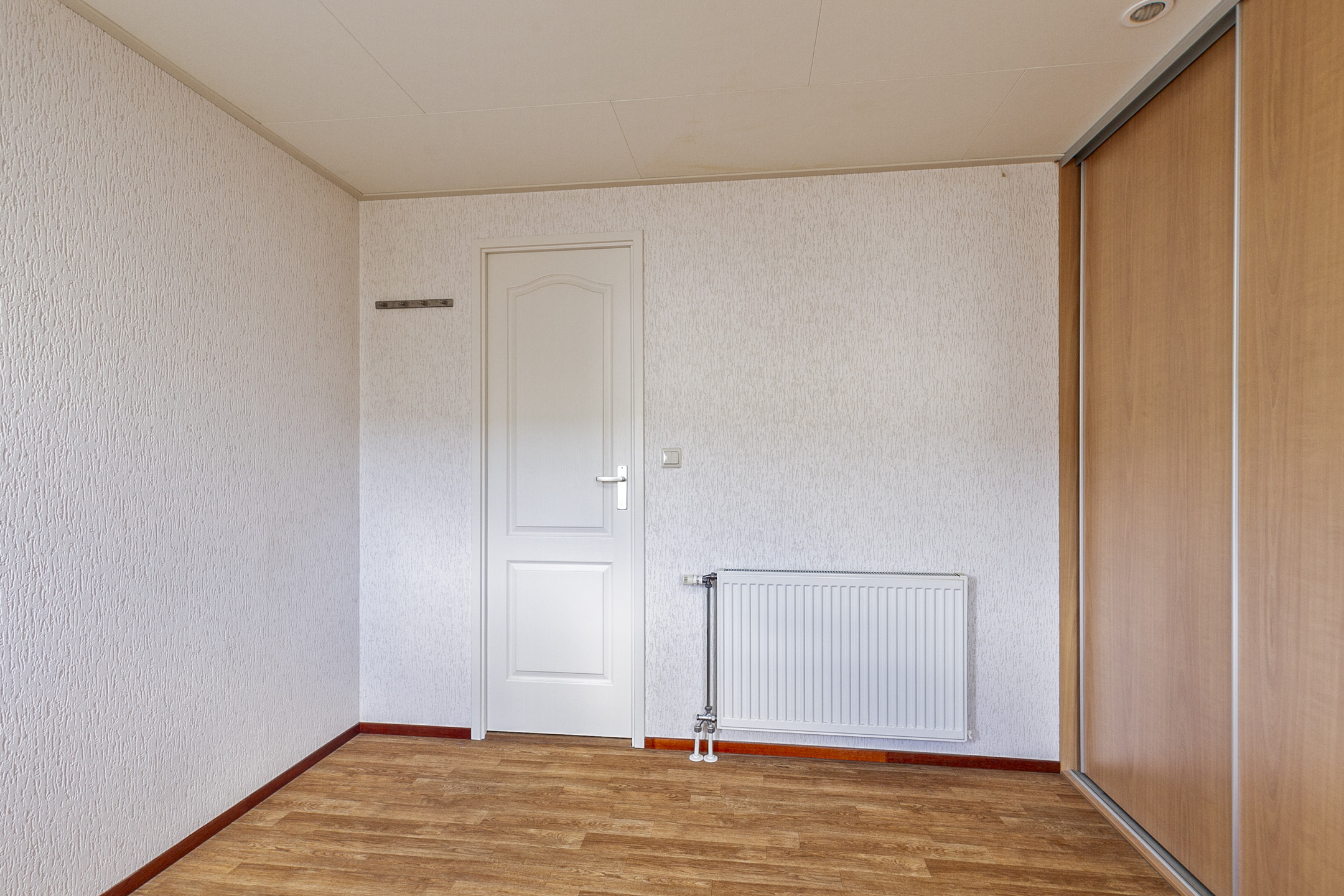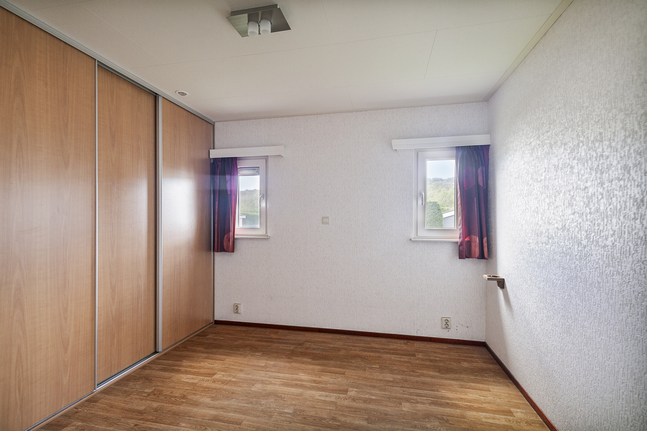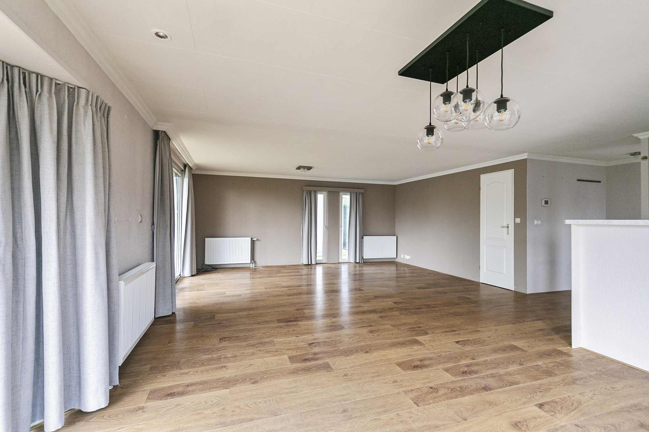 Entree in de hal met toiletruimte en cv-ruimte. Loopt u verder dan bereikt u de ruime woonkamer met open keuken voorzien van 5-pits kookplaat, combi- oven, diepvries, koelkast, vaatwasser en afzuigkap. De woonkamer beschikt tevens over openslaande tuindeuren naar het terras en grote raampartijen welke zorgen voor genoeg lichtinval. Daarnaast beschikt chalet over een hal met toegang tot de 3 slaapkamers en de badkamer met douche, wastafelmeubel en toilet.
