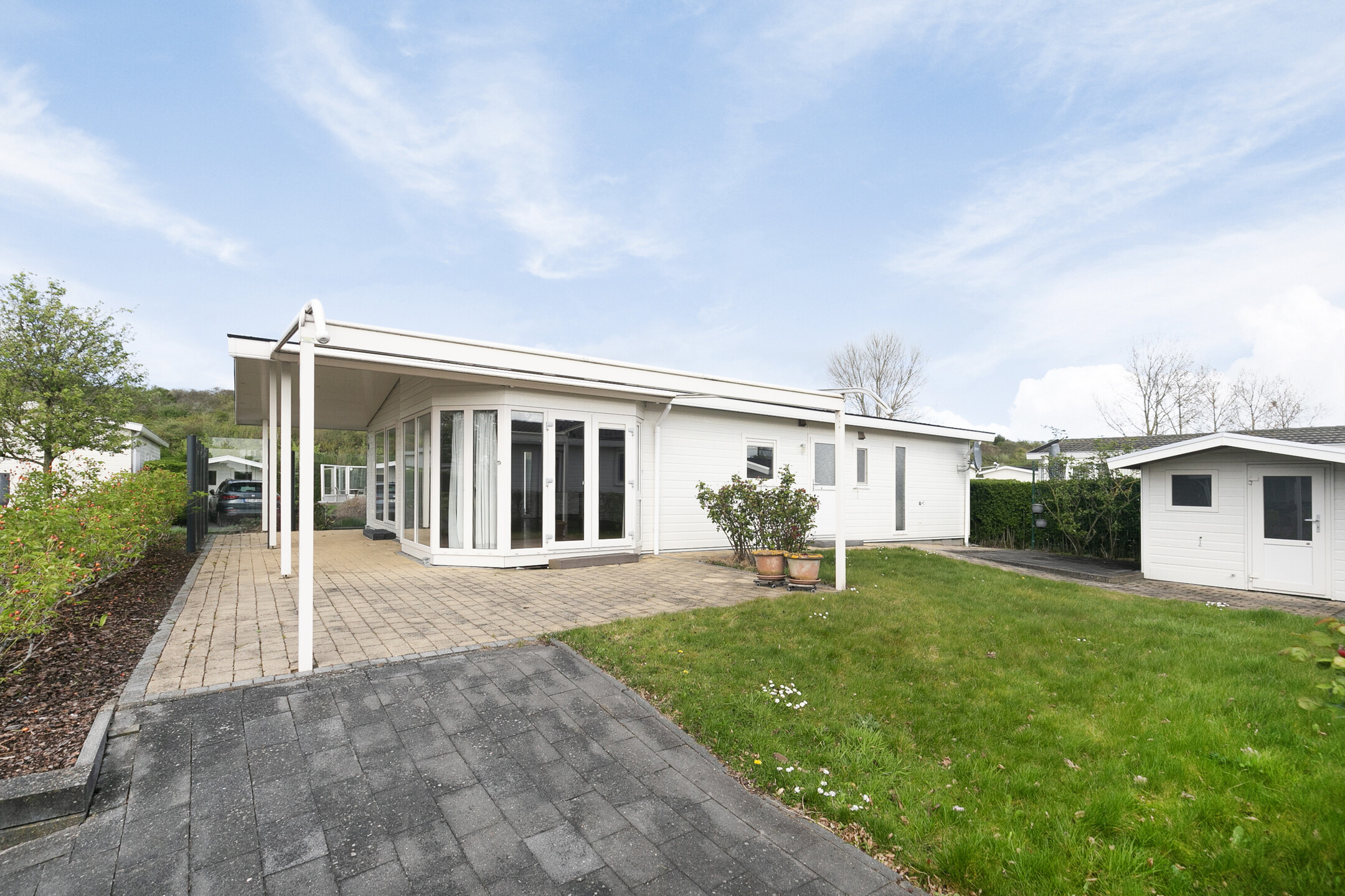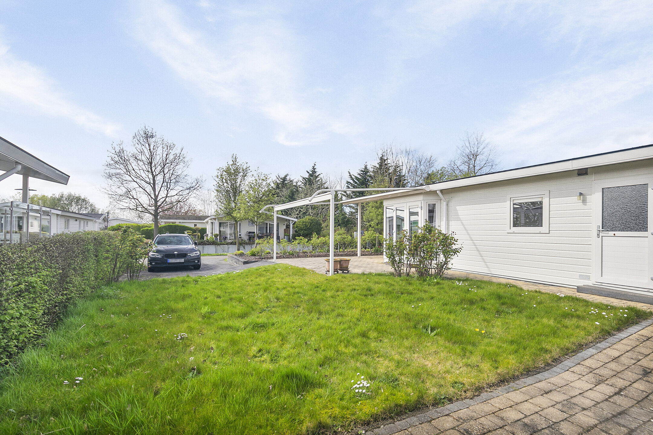Zonnige tuin met terras, het terras biedt voldoende ruimte voor een gezellig zit- en/of eethoek. De tuin beschikt ook over een praktisch tuinhuis voor extra opslagruimte. Het chalet is tevens voorzien van een parkeerplaats op het eigen perceel.