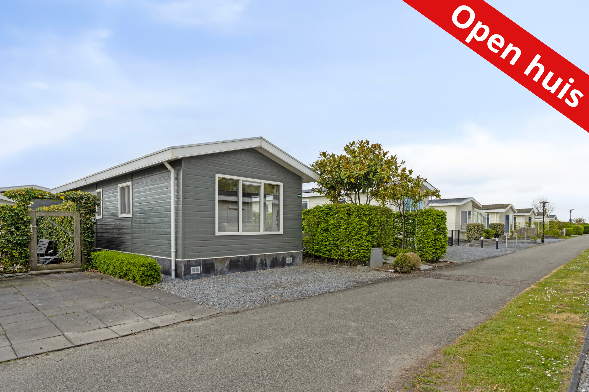 De zonnige en ruime tuin biedt op het terras voldoende ruimte voor een gezellige zit- en/of eethoek. Daarnaast beschikt het chalet over een tuinhuis, ideaal voor extra opslagruimte. Extra pluspunt: het chalet beschikt over een eigen parkeervoorziening.