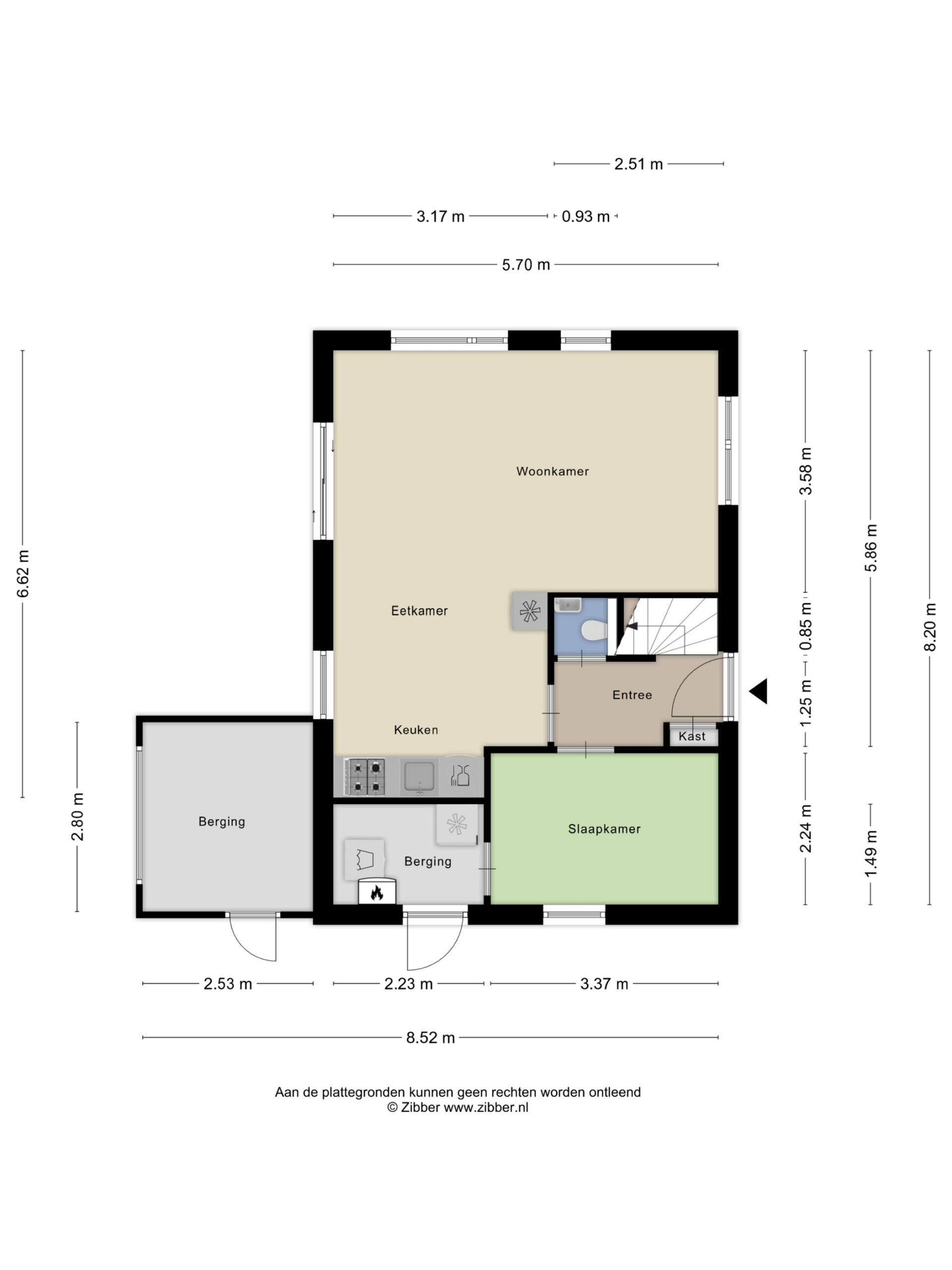 Bij binnenkomst betreedt u de hal, die toegang biedt tot een slaapkamer en een separate, moderne toiletruimte. Vanuit de hal komt u in de ruime, lichte woonkamer, waar grote raampartijen zorgen voor een prettige lichtinval. De open keuken is voorzien van diverse inbouwapparatuur, waaronder een 4-pits gaskookplaat, afzuigkap, oven, vaatwasser en een losse koelkast. Via de schuifpui heeft u direct toegang tot de zonnige achtertuin.