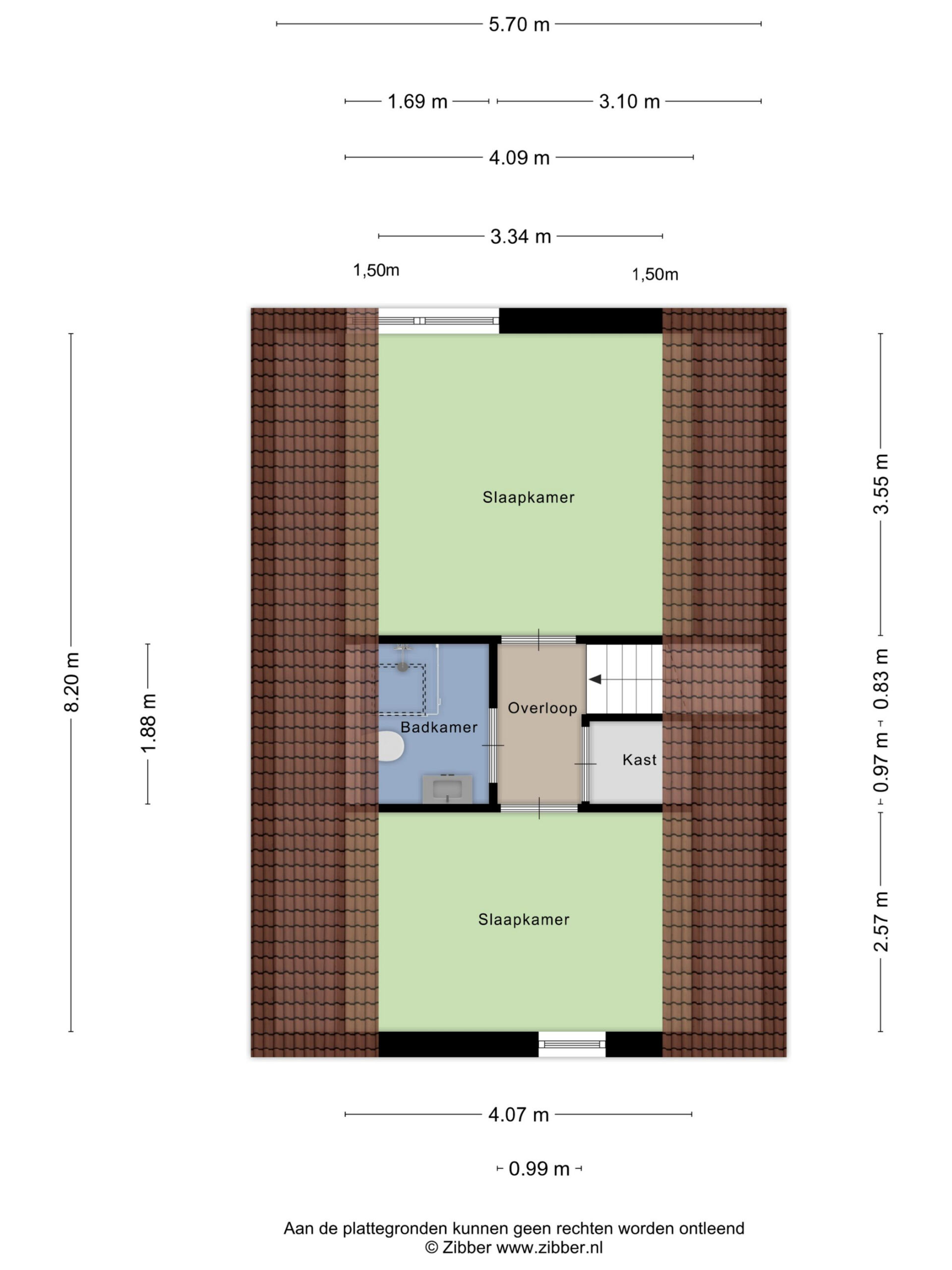 Op de eerste verdieping vindt u een ruime overloop met toegang tot twee comfortabele slaapkamers en een complete badkamer, uitgerust met een inloopdouche, wastafelmeubel en toilet. Daarnaast is er een praktische berging aanwezig voor extra opslagruimte.