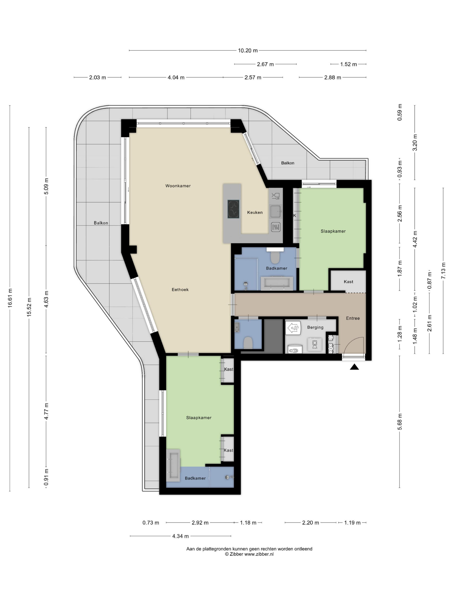 Het appartement is gelegen op de zevende verdieping en is zowel per trap als lift bereikbaar. U betreedt het appartement via een ruime hal met garderobe, die toegang biedt tot de verschillende vertrekken. Aan het begin van het appartement bevindt zich een slaapkamer met een tweepersoonsbed en een badkamer en suite, uitgerust met een douche, een dubbel wastafelmeubel en een toilet. Daarnaast beschikt de slaapkamer over vaste kastruimte en biedt deze toegang tot het balkon.